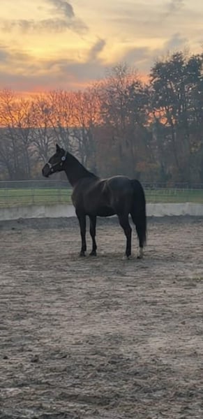 Anglo-Arabo sportivo (Małopolski) – prestigiosa linea sportiva polacca È in vendita un Anglo-Arabo (Małopolski) sportivo di 9 anni. Il castrone è baio scuro, con un evidente segno bianco sul muso e una macchia bianca sulla gamba posteriore destra. Proviene da una linea di allevamento polacca di grande prestigio del rinomato allevamento SK Janów Podlaski. Padre: Drop (Małopolski, nato nel 2001, da Vis Versa, da Dratwa, allevatore SK Janów Podlaski) – Campione degli stalloni – Miglior cavallo a Białka 2003 – Vicecampione dei Campionati Polacchi dei Giovani Cavalli (5 anni) – Stallone affermato con discendenza sportiva Nonno: Vis Versa – Potente stallone Anglo-Arabo con discendenza sportiva di successo in Polonia Il cavallo è attualmente preparato in modo mirato per la partecipazione alle competizioni. Come cavallo da salto con temperamento, qualità ed elevato potenziale sportivo, non è adatto ai principianti, ma a un cavaliere esperto che desideri continuare a svilupparne le capacità. Adatto per salto ostacoli, completo, lavoro in campagna, nonché per attività ricreativa ambiziosa. WhatsApp: +48 798 521 709