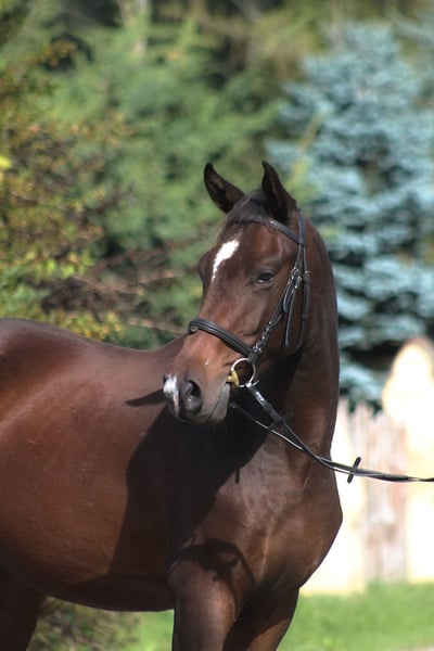 For sale 3, 5 yo beautiful gelding by Emark - amazing black dressage polish stallion, compete in high level. (last picture) Also many more best Anglo Arabian horses in the pedigree, suitable for dressage, eventing or endurance . Grandsire The Anglo Arab stallion All That Jazz was imported to Biddesden from Victoria in Australia as a colt. His sire is the Arab stallion SS City Lights who was bred in the USA and nearly 16 hands. His dam is Belingo, an Australian Thoroughbred by Saulingo. Jazz was always a tall colt with great scope to his stride. He has the softest and springiest of canters as all who have been lucky enough to ride him will attest. He was taken through the ranks to advanced level in British Eventing by William Fox-Pitt and went hunting for a season with the South and West Wilts. His foals have been successful in the show ring and have made a promising start in eventing, with their big strides and elegant steady head positions. Also australian, both arabian and thouroughbred horses are well known and appreciated for their hardness and durability and have achieved many successes in international endurance ! Deeper in his pedigree we find top egyptian bloodlines such as Hadban Enzahi (Mazan), Gharib garis and some top polish bloodlines such as Europejczyk and Palas.. Empire AA is Of exceptional beauty and charizma, long-legged and well built, with elastic and extensive movement. Long neck, beautiful subtle head. Very good topline. He is now 166 cm high at 3,5 yo cm. Lovely, chocolate color ! Born and raised on big meadows, pastured every day with a group of youngsters. Candidate for endurance sport (nearly 50 % arabian blood) for tall rider ! or allround /dressage horse. Dam is endurance horse in Estonia, granddam exported to Dubai , competed in 120 km races . Just has been broken to ride, slowly, easy without pressing and patents. Works in walk and trot. Price + 8% VAT Full papers, e-pass, vaccinated, dewormed etc. Located western Poland near PL/D border . Transport can be arranged . Contact by WhatsApp + 48 513 179 245