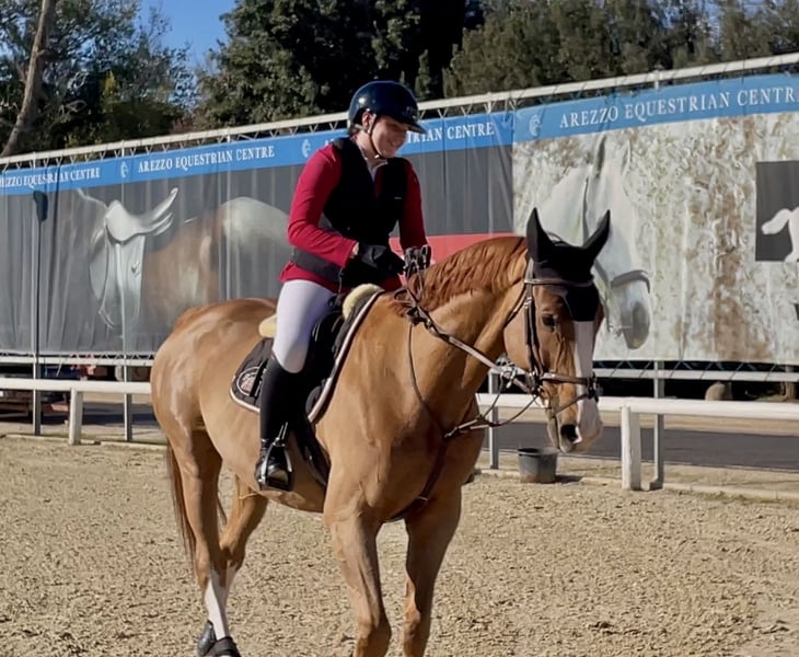 Gelding 8 years old (born on March 24, 2016) Alzan Height: 1.75 m (17.1 hh) Has competed up to 115 cm, with 120 cm at home Potential for higher levels Calm and respectful temperament towards the rider Lunges well Can be ridden alone in the paddock or with other horses nearby Suitable for outdoor riding, hacking, and countryside rides No issues with trailer or truck transport Currently located near Lyon
