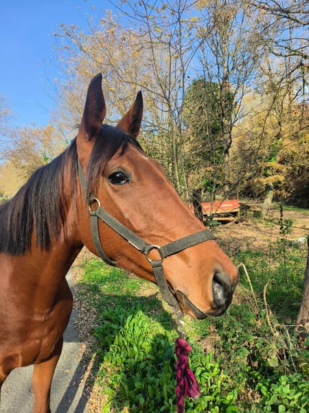 Here is the English translation of your horse listing description: --- **Anglo-Arabian Mare, Mare, Foaled in 2022** Dark bay in color, this mare offers an ideal opportunity for those seeking a versatile horse with great potential. Standing approximately 15.6 hh, she presents as a well-balanced and proportioned female, perfect for recreational riding and amateur-level activities. She has a calm temperament, excellent stamina, and a good predisposition for dressage, jumping, or simply for pleasure riding. The mare is friendly and easily adaptable to any equestrian environment. Ideal for those looking for a reliable and gentle horse, this young mare promises a bright future in recreational or competitive riding.