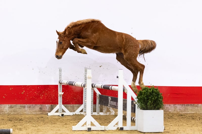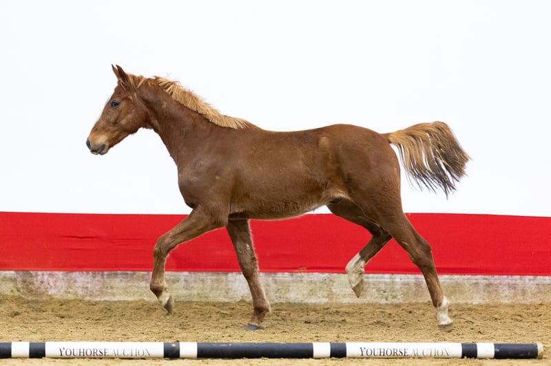 An impressive model with clear jumping quality Hazelberg’s Unas is an impressive chestnut with blond mane, a beautiful model and a strong build. He shows a lot of power off the ground and appears very careful over the fence. When jumping, he clearly displays quality, combining strength with control. A horse that stands out for his scope and jumping technique. Sire Nixon du Park (Nixon van ’t Meulenhof x Quick Star) competed at 1.40m level and is licensed with KWPN. He combines modern sport genetics with proven performance. Grandsire Nixon van ’t Meulenhof competed internationally at 1.60m level and is a well-established name in sport and breeding. Damline The dam is Pico Bella H (Hocus Pocus III Z), descending from a performance-oriented sport family. Hocus Pocus III Z competed at 1.55m level and is licensed with BWP. The second dam Wieneke (Cantos) produced several sport horses, including Hazelberg’s Las Vegas (Juweel), who competed at 1.35m level. Cantos himself competed internationally at 1.60m level and is known as a reliable sire of scope and attitude. Further down the damline: – Lien (Winckenburgh), competed at 1.30m level – A family with multiple horses competing at 1.30m level and higher This damline shows a consistent combination of sport performance and reliable breeding.