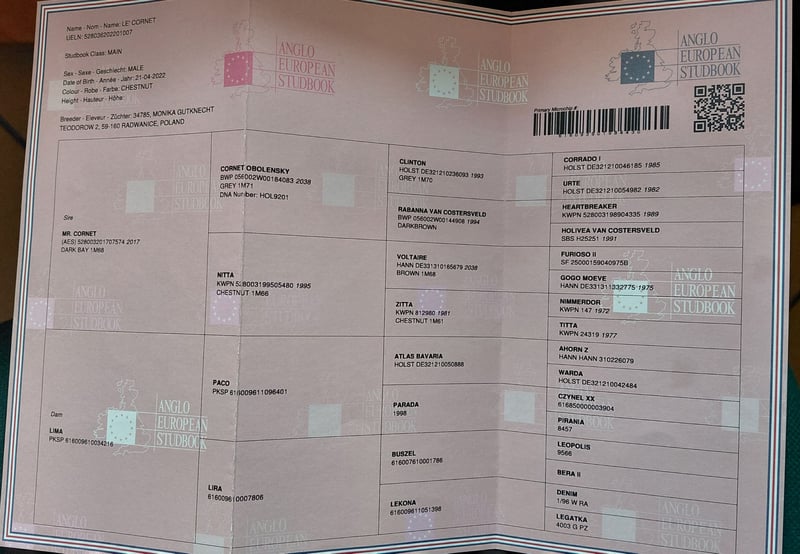 Le Cornet Anglo-European Studbook Height: 16.1 hh Date of Birth: April 21, 2022 Very good, balanced temperament both under saddle and in handling. Easy to transport. Brave, confident – rides alone and in groups. Easygoing in the herd, a friendly and well-mannered pony seeking contact with people. Ridable and eager to cooperate. Does not mind ditches, curbs, planks, or other scare tactics. Currently jumping up to 80 cm, in continuous training. Has potential for high-level sport and is an excellent prospect for this year's Polish Young Horse Championships. Easy to handle – suitable for a child or amateur rider. Video link: https://youtu.be/djT5xNCQ_zk?feature=shared After initial competitions. New environments do not bother him. Healthy – fully vetted with a TUV certificate from October, available for review. Available for viewing near Radzymin, 20 km from Warsaw. Test ride available for a fee. More information via WhatsApp +48 608 007 499