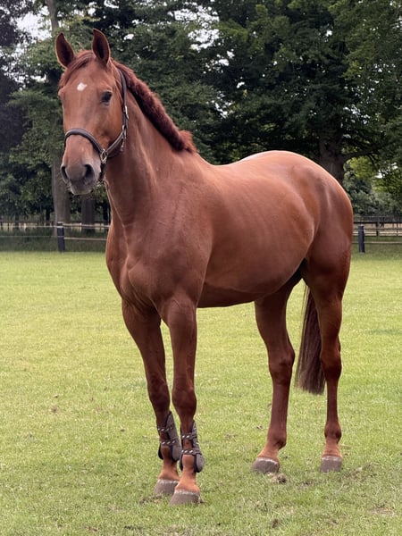 Royal’s Caleb FVE 2017 | Gelding | approximately 173 cm | mare Eventing L | Show Jumping 1.00 m | Dressage L1 Royal’s Caleb FVE is a versatile and eager-to-work gelding with a gentle temperament. He is currently competing in eventing at the L level, jumping 1.00 m, and competing in L1 dressage. Caleb is well-behaved in the stable and easy to ride under saddle, with a pleasant jump and consistent effort. He can be somewhat sensitive, but he is honest and eager to cooperate. He also has experience participating in several hunt chases, which he has performed calmly and with enthusiasm. In cross-country, he proves to be a brave and intelligent horse with good awareness of his surroundings. Caleb was fully approved as a four-year-old in 2021; re-approval is of course possible. He would suit a rider looking for a sport horse with a solid foundation, good trainability, and enjoyment of work. He is being sold because I will be moving abroad for an extended period. 📍 Available for viewing in Tilburg 📞 For more information, contact via WhatsApp or call: +31 623088430
