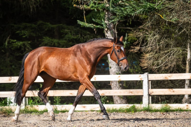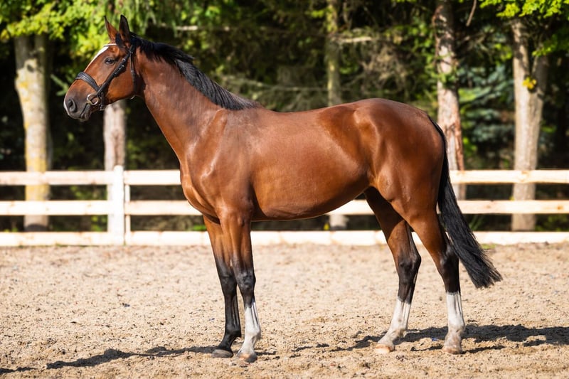 Mare, 4 years old, 16.1 hh, with excellent pedigree: Q’Chacco Blue van Essene / Chacco Blue x Casco / Narcos II A stunning, eye-catching mare that has everything a young sport horse at the highest level should possess. She is strong, dynamic, and precise over fences. She craves human interaction, is eager to cooperate, rideable, and easy to handle, yet she also has a spark (thanks to her grandsire Chacco). Under the saddle, she is delicate to aids, comfortable, and a pleasure to ride. She moves beautifully and looks even better. Healthy, with recent TUV examinations. Location: Kołobrzeg Northwestern Poland Phone: +48 530 720 725