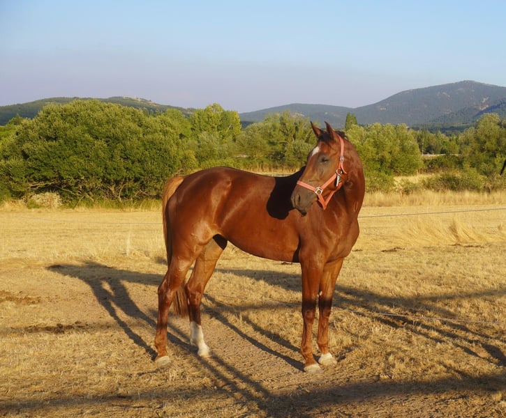 PICO BELLA H, yegua de 5 años, con muy buenos movimientos a los tres aires. Está empezando a saltar. Por parte de padre es hija de "HOCUS POCUS III Z" y por la línea materna viene por "CANTOS"