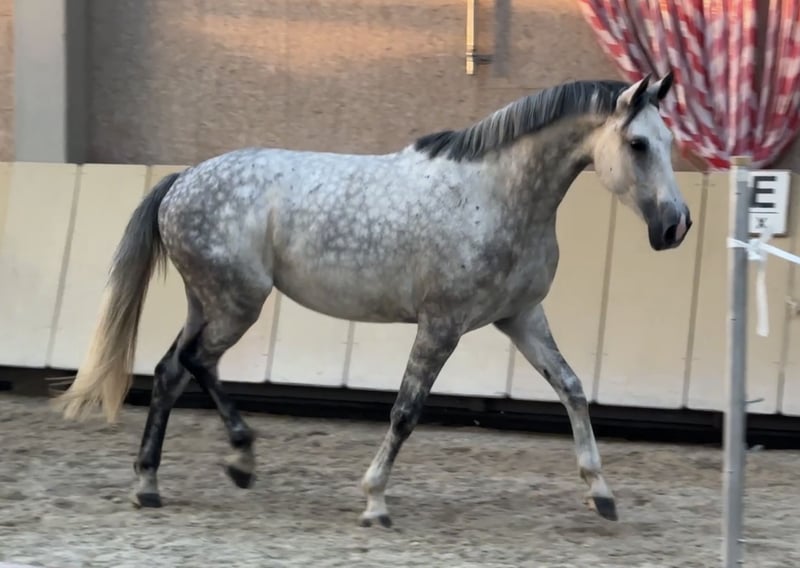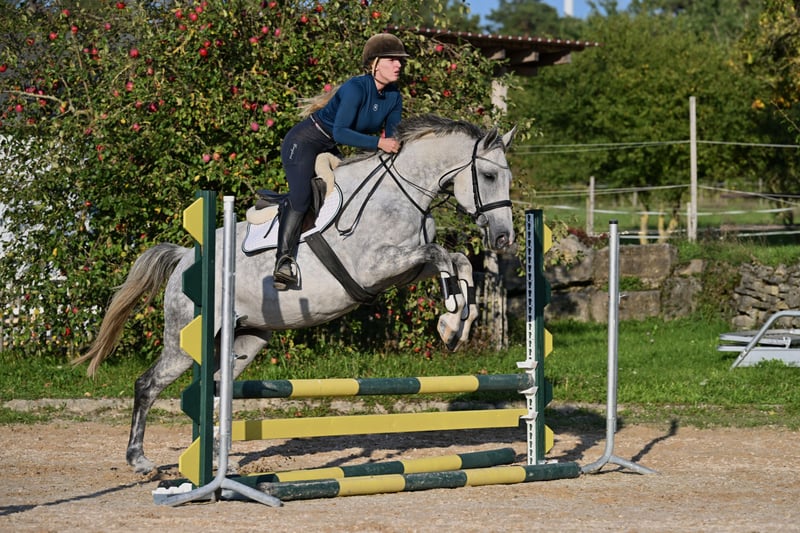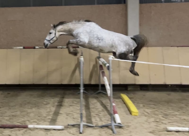 ⭐️ Sire: Comme il Faut, Cassini I, Stakkato, Cornet Obolensky, Come On, Ramiro Z, Ratina Z, Argentina Z… ⭐️ Born in 2018 ⭐️ Mare ⭐️ 16.1 hh ⭐️ Herd-compatible ⭐️ Load-trainable ⭐️ Farrier-friendly ⭐️ Ridden by children ⭐️ Well-behaved in the field ⭐️ Had three foals ⭐️ Würzburg area ⭐️ Transport available at additional cost ⭐️ Under saddle training possible ⭐️ Large pre-purchase veterinary exam (AKU) available for approx. €800 ⭐️ On consignment A very beautiful mare with an elegant, refined appearance. She is very well-behaved and easy to handle, even by children. Under saddle, she shows a lot of go and still needs to learn to use her body correctly musculature-wise. Her main focus is on relaxation. She makes quick progress in jumping, learns very fast, and is thoughtful. She enjoys working and wants to please. Several children have ridden her. In the field, she is also well-behaved and now leads young horses very calmly. Minor flaw: small scar on the left hind leg outside. Does not affect her. X-ray taken by interested party showed no issues. Will be corrected by the farrier. Despite high workload, she has never had problems. Only serious inquiries will be answered. Unreasonable or disrespectful inquiries will be ignored. Test rides cost €25, which will be deducted from the purchase price. Beginners only with experienced trainer supervision. Price will increase with further training.