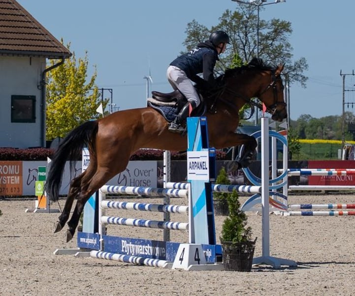 I would like to present a young mare with exceptional potential for top-level sport. She stands out for her very feminine conformation, eye-catching elegance, and grace. Golden bay in color, with no markings. She is confident, reliable, and eager to learn, showing rapid development and natural talent. She effortlessly jumps colorful and technically demanding courses. Normandie boasts an excellent pedigree. Her sire, Joyride ES, competes at the 1.45 m level (→ https://www.fei.org/horse/106PE17#infoHorse ). Joyride ES is by Verdi TN, whose international achievements place him among the best horses in the world. Verdi competed in all senior championships from 2011 onward, winning two team gold medals (WEG 2014, Aachen 2015) and a team silver medal (London 2012). With Verdi on the team, the Dutch national squad also won the Nations Cup Final in Barcelona in 2014. Individually, he won, among others, the GCT Grand Prix in Madrid, the Longines Grands Prix in Lyon and Al Ain, and the Salzburg Grand Prix. On the GCT circuit alone, he earned nearly €400,000. The dam line of Joyride ES traces back to the outstanding stallion Heartbreaker. Normandie’s dam comes from a line of horses successful at national level in eventing (CCIs) and show jumping. → https://www.bazakoni.pl/database,op-show_tree,horse-218042.html Normandie is regularly vaccinated, dewormed, and shod, and receives consistent dental care. She travels very well, is easy in daily handling, and stands quietly for the farrier and veterinarian. Despite her young age, she remains calm and composed at competitions, showing maturity beyond her years. She is currently in regular show-jumping training with Karol Chrzanowski. If you are looking for a horse with a good temperament, ambition, and great future potential, Normandie may be the perfect choice. Directly from the breeder. For more information, current photos, videos, or to arrange a visit, please contact me. Pedigree: https://angloeuropeanstudbook.co.uk/database/826002190887796-normandie Location: 55-050 Wojnarowice, Poland Contact: +48 669 594 388 https://angloeuropeanstudbook.co.uk/database/826002190887796-normandie