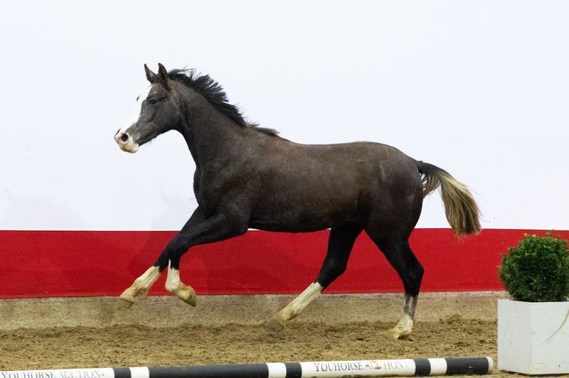 Wat een prachtige jaarling is dit met zijn vier witte voeten, blonde staart en mooie manier van springen. Wie legt Tallan vast voor de toekomst? Vader is Telstar JM TN (Ermitage Kalone), een zesjarige hengst die afkomstig is uit de stam van Jus de Pomme en O’Bailey van het Brouwershof. Moeder De Nacht Wacht (Vaillant) is een KWPN-elitemerrie en halfzus van de 1.60m Grand Prix-hengst Rocky W, gerede door Kaitlin Campbell (USA), en een 1.40m springpaard. Grootmoeder Mona Liza (Corofino x Lincoln) behaalde de predikaten ster, preferent en prestatie