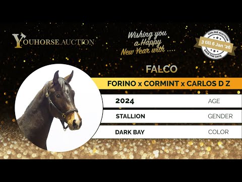 Falco immediately stands out for his way of moving and jumping. He shows an excellent trot and canter and has a big, ground-covering canter. Over the jump he shows plenty of scope, judges the fence with calmness and overview and jumps with good technique. This natural overview will later help the rider to find correct distances more easily in the course. His beautiful dark colour makes him a real eye-catcher, both now and for the future. A young horse that inspires confidence and shows clear promise. Sire Forino, by For Pleasure, competed himself up to 1.45 m level, including international young horse classes. Grandsire For Pleasure competed at 1.60 m Grand Prix level and is one of the most influential sires in modern showjumping, known for passing on mentality, reflexes and rideability. The damline is very strong. Dam Falla, by Cormint, competed at 1.20 m level and descends from a family full of international sport horses. The damline includes Cassino at 1.45 m, Biqueen at 1.40 m, Cesaria TT at 1.40 m, Calimbo 10 at 1.40 m and Catwalk van de Helle, who competed at 1.60 m Grand Prix level. The line also produced approved stallions, confirming its reliability for sport and breeding Falco brings together a big canter, scope and natural overview with a proven performance pedigree, making him a very interesting prospect for the future.