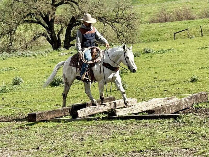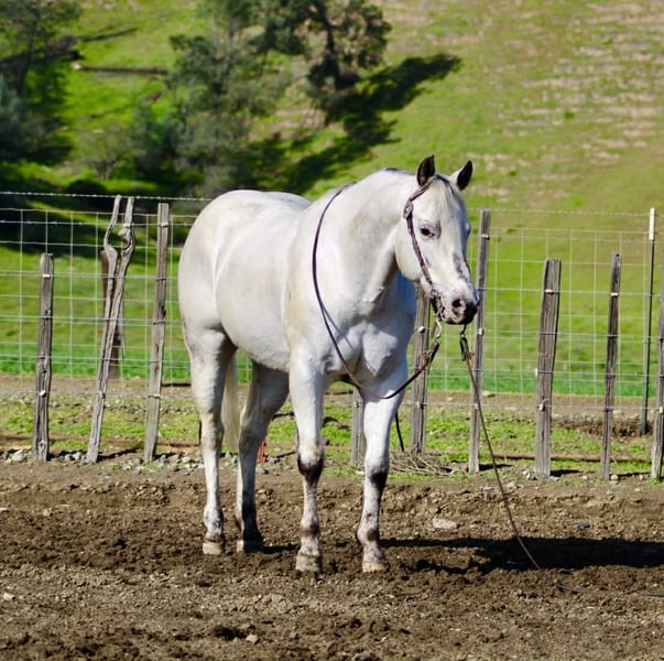 "AVAILABLE ON ONLINE HORSE AUCTION AT www DOT PlatinumEquineAuction DOT com BIDDING OPEN NOW thru SUNDAY | MARCH 1ST! *Final price will be determined on auction site* CONSIGNOR CONTACT INFO: Longhorn Ranch 831-537-1915 - LOCATION: Paicines, CA Big Chief-The one you have been searching for If you’ve been searching high and low for your dream horse but haven’t found the one yet, look no further — Big Chief is it. This handsome grey Appaloosa has it all: eye-catching looks, a gentle nature, and an exceptional mind. He’s truly the kind of horse every barn needs. Big Chief is an 10-year-old, solid 14.3 hand gelding who is extremely correct and balanced. His striking grey Appaloosa coat catches the light beautifully. He’s the kind of horse that turns heads wherever he goes, yet stays quiet and humble about it. Anyone can ride Big Chief — he has a way of making every rider look good. He’s calm, slow, and collected, with absolutely no spook. He lopes easy, picks up his leads effortlessly, and has a smooth, correct way of going. In the arena, he’s capable and stylish without ever feeling busy or demanding. Outside, Big Chief is just as impressive. He’s been ridden on trails, through rocky terrain, and while gathering cattle, confidently navigating hills, trees, and uneven ground. Wildlife doesn’t bother him, and he stays relaxed whether riding alone or in a group. Roads, traffic, and town environments are no issue — cars going by don’t faze him one bit. Big Chief has been roped on in branding pens and is started nicely out of the box. Obstacles like bridges, tires, and flags don’t concern him — he handles them quietly and willingly. He’s been hauled, paraded through town, and ridden by children, always staying calm and dependable. He handles time off well, is current on vaccinations and Coggins, and is great for the farrier and veterinarian. Big Chief is happy in a stall on rainy days and enjoys pasture turnout just as much. He’s friendly, enjoys being groomed and pampered, loves his cookies, and stands patiently for grooming and tacking. He is an absolute pleasure to be around, and we’ve enjoyed every minute with this special horse. Longhorn Ranch Dina Cabral: 831-537-1915 Located in Paicines, California Call or text to come meet Big Chief