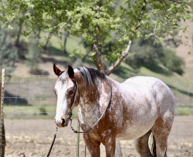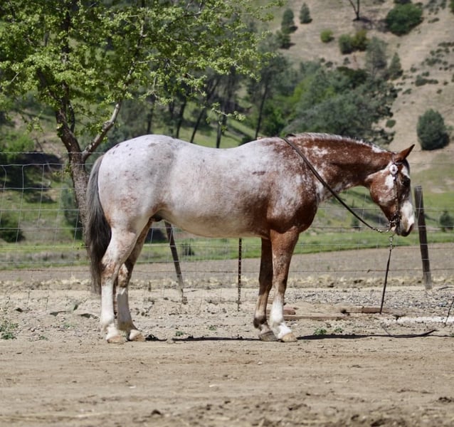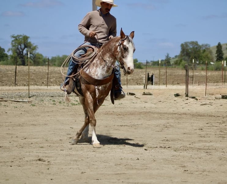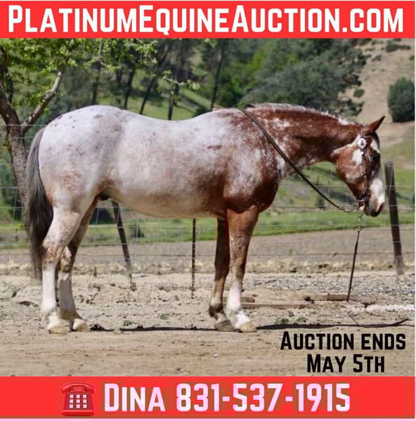 ONLINE AUCTION Place your bids at www.PlatinumEquineAuction.com Starting Bid $3500 Auction ends May 4th, 2025 Need a new saddle? Check out White Rock Saddles on our website or Facebook! If you’re on the hunt for the coolest buddy around Brick is your guy. This Appaloosa gelding stands at a perfect 14.1 hands and is as friendly as they come. At just 10 years old, he’s packed with experience and fun that’s hard to find all in one package. Stout enough to carry anyone comfortably, Brick isn’t just your average horse; he’s a handy companion who thrives in adventurous situations. Whether you’re scaling mountains or navigating narrow brush-covered trails, Brick is absolutely your go-to guy! He has seen it all—pigs jumping out of nowhere? No problem! To him, encountering wildlife is just another day at the office.He goes out alone or in group settings make rides enjoyable. With the training under his belt, he walks, trots and canters smoothly while executing nice circles that would impress any rider. His stops are seamless, and backing up feels like a well oiled transmission and his sharp turnaround makes showing him off fun.If you crave some excitement during trail rides filled with obstacles like covered wagons or pool noodles—he’ll tackle them like a pro. Flags? Tarps? Bouncy balls? Bring it on because this boy shines no matter what challenge comes his way! Safe enough for horse savvy kids yet capable of keeping pace with much larger horses while working cattle makes him incredibly versatile too. Plus, did I mention he’s got roping skills from gathering to branding? It’s hard not to smile when handling such an eager partner who tacks up easily and ties like an angel great for the farrier, stalls or pastures well. He is just a pleasure to be around. Hauls great and travels well. If you like to know more about this handsome gentlemen contact Longhorn Ranch Dina 831-537-1915 located in Paicines California we have shipping options anywhere. Don’t hesitate to call and come meet this boy. ONLINE AUCTION Place your bids at www.PlatinumEquineAuction.com Starting Bid $3500 Auction ends May 4th, 2025 Need a new saddle? Check out White Rock Saddles on our website or Facebook!