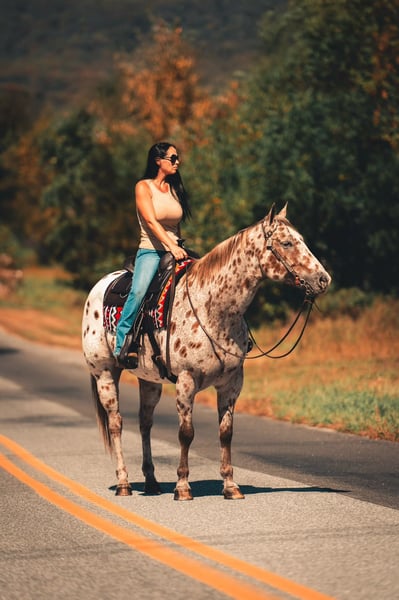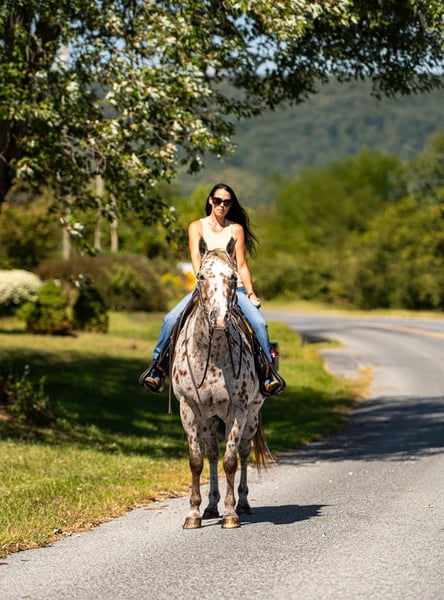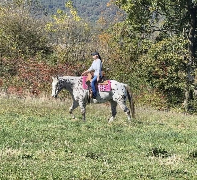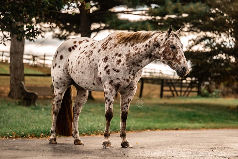 ⚜️𝐓𝐇𝐄 𝐅𝐀𝐋𝐋 𝐇𝐄𝐑𝐈𝐓𝐀𝐆𝐄 𝐂𝐋𝐀𝐒𝐒𝐈𝐂⚜️ Happening now thru MONDAY | NOVEMBER 3rd - Available EXCLUSIVELY on HorseBid's website! For more details and to register visit: www.Horsebid.com CONSIGNOR CONTACT: Bella View Farm LLC 717-880-8255 LOCATION: Grantville, PA BREED: Appaloosa REGISTERED: Yes REGISTERED NAME: Bold En Cowboy Print COLOR: Leopard HEIGHT: 15.3 AGE: 11 GENDER: Gelding “Bold En Cowboy Print” affectionately known as Hollywood in our barn is a GORGEOUS 11yr old Leopard Appaloosa gelding. He sticks 15.3h and has a massive body, lots of bone and huge strong feet!! He’s the type that is not only stunning and a head turner but he is built to last! He is 5 panel Negative. Whether you’re looking to go for a leisurely trail ride, paper chase with friends, or hit the local show pen Hollywood has the temperament, movement & ability to do it all!! Very steady Walk, trot & canter with correct leads in the ring or out on the trail. Stands quietly to mount with a block or from a fence. He’s happy to just go for a long relaxing walk on the trail or down the road but when asked is also happy to kick it up a gear for some trotting, cantering and popping over some jumps on the trail or out at a paper chase. He is traffic & road safe and he truly LOVES riding out!!! I’ve personally trail rode him a lot and I’ve also let my friends and lesson students take him down the road & out on the trails. We have been passed on the road by farm equipment, cars, tractor trailers & have even went through a construction zone without Hollywood blinking an eye!! True 1 finger neck rein whether your riding in a halter, shank bit, snaffle or neck rope!! Running late on time some days?!?! No worries Hollywood will happily ride anywhere in a halter & bareback as well. Lightly started over fences inside and outside of the arena and loves it!! Can take a joke and very brave to the fences. Personally I could see him being an awesome foxhunt horse!! He rides well with company but is also perfectly happy to ride out alone on the road & on the trails, no company required for this confident boy!! Hauls off property like a dream alone or with company, loads and unloads very easily, settles in like a pro at new places & facilities. Will cross tie or hard tie for HOURS without moving a muscle, falls asleep to be clipped (Yes even his ears!), loves to be groomed and bathed, will wear a fake show tail with no complaints. Desensitized To Tarps(you can completely wrap him up in it he won’t care!) balls, farm equipment, traffic. Very respectful and great ground manners. Hollywood even gives “fist bumps” on command!! Started in showmanship & ready to go win in the halter classes!! He is a beautiful mover and could easily excel in the English show pen, ranch, or western dressage. Nice solid big feet, Sound with no past health issues or injuries! No current maintenance & a very easy keeper!! Perfect for the vet & farrier. Will happily live inside or out, Can be out in a mixed herd or does fine being in private turnout alone. He’s very independent under saddle, and in the barn. He could care less whether he is the only horse on the property or if the barn is full of horses. Hollywood came out of a very reputable breeding program and started his undersaddle training there as a youngster, they raved about him & had nothing but wonderful things to say about him!! While his pictures are beautiful, they do not do him justice of just how stunning he is in person!! One’s like him don’t come along often & we know you’ll have a blast with him just like we have!! Sells with a new Coggins & Dental float. Happy to help coordinate shipping! Don’t hesitate to reach out with any questions or to come see him out in person!! Heidi Albright (717)880-8255
