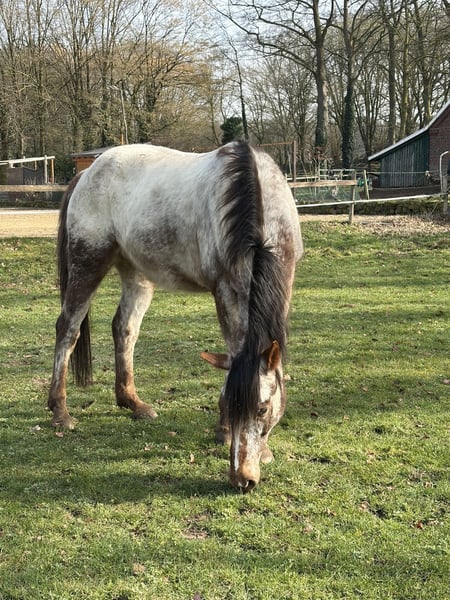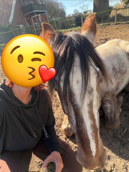 Ich verkaufe White Back Buddy, einen 2012 geborenen Appaloosa Wallach mit Abstammungsnachweis. Mit seiner Musterung und Farbe (Chestnut) ist er ein echter Hingucker. Er ist geimpft, entwurmt, war beim Zahnarzt und natürlich regelmäßig beim Schmied, wo er brav ist. Außerdem ist doppelt negativ auf PSSM getestet worden. Er wurde und wird freizeitmäßig geritten. Gezäumt wird er gebisslos mit einem Glücksrad. Dabei reagiert er sehr fein auf Hilfen. Er läuft barfuß mit Hufschuhen, war die letzten Monate aber vorne beschlagen. Er ist ein guter Kumpel, sehr menschenbezogen und gelehrig. Fühlt sich im Gelände wohl und ist dabei sehr trittsicher und nicht schreckhaft. Beim Klettern kann man ihm gerne die Führung überlassen. Bei der Bodenarbeit ist er aufmerksam. Er kennt Boxenhaltung und Offenstall. Hänger fahren ist kein Problem. Ich selber habe ihn vor etwas über einem Jahr gekauft in dem Wissen, dass er Training und Ausbildung nötig hat. Beim Probereiten hatte er leicht gebuckelt, was aber leicht zu sitzen war. Die Aufgabe schien machbar. Ich habe Muskelaufbau betrieben und zusammen mit einer Trainerin versucht ihm Freude an der Bewegung zu vermitteln. Im Herbst ist der Rücken geröntgt worden. Es wurde ein Wirbelengstand diagnostiziert, der aber bei ausreichender Bemuskelung unkritisch ist. Über den Winter ist er nicht geritten, sondern vom Boden gearbeitet worden, mit gutem Erfolg für den Muskelaufbau. Im Schritt haben ich mit Buddy gute Erfolge erzielt, fleißige Schrittrunden waren möglich, aber im Trab zeigte er wieder einen deutlichen Unwillen durch buckeln. Die Aufgabe Buddy zu einem für mich gut zu reitenden Kumpel zu machen ist für mich zu groß. Ich bin Späteinsteiger und leider nicht mehr 20. Mir fehlt die nötige Erfahrung und Sicherheit für diese Aufgabe. Das musste ich leider erkennen. Buddy braucht einen erfahrenen Reiter der sensibel mit ihm arbeitet, ihn fordert und fördert. Er ist kein Anfängerpferd und wird nur in kompetente Hände abgegeben. Telefonisch gerne mehr.