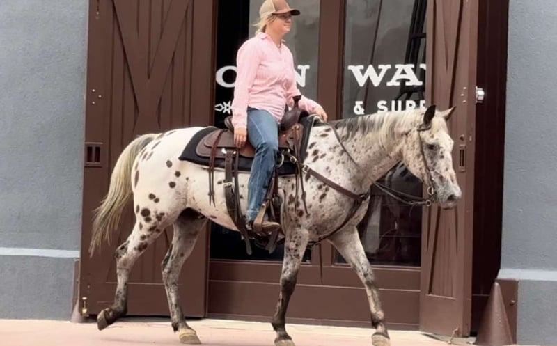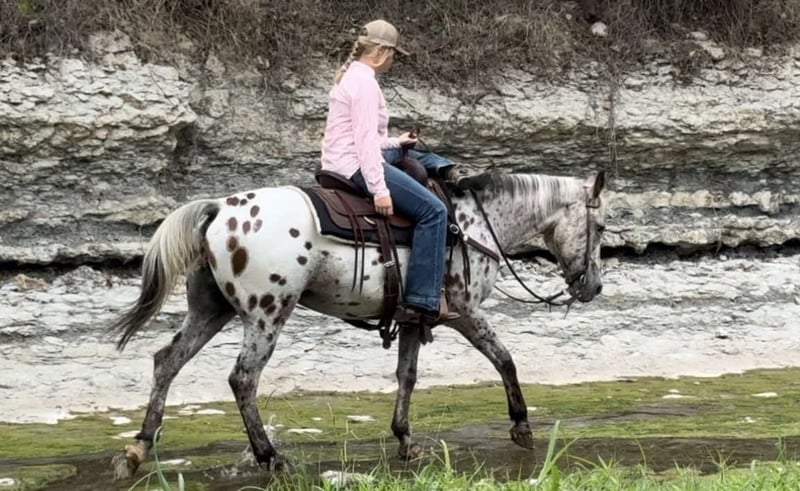 ONLINE AUCTION Place your bids at www.PlatinumEquineAuction.com Starting Bid $3500 Auction ends September 29th, 2024 Need a new saddle? Check out White Rock Saddles on our website or Facebook! “Santo” is a 14.1H, 14 yr old Appaloosa gelding. If you’re looking for the best of the best when it comes to color, safety, ease to handle/ride, personality and gentleness, they just simply don’t come better than Santo. He’s an absolute SAINT the whole family can enjoy. The very smallest babies up to the novice adults will be safe on this guy! He is extremely easy to ride, neck reins perfectly, switches gaits only when asked, stop when he’s told to and has absolutely ZERO buck, bolt, rear or spook. Santo has been with a family full of kids and has done all the things kids can think of on their trusty steed. He’s dabbled in the play day events, seen countless amounts of trails, roped some slow cattle, and even been jumped! He would be the perfect first horse or horse for a kid looking to go have fun with something experienced in practically everything! Santo would also be the perfect trail/pleasure horse for anyone needing a safe, predictable, COMFORTABLE, sure footed, sane mount. Leave him off a day or 6 months and he’s the same horse every time. He is so much fun to ride and will put a smile on anyone’s face that swings a leg over him! He has one of the best people pleasing personalities and is so SWEET!! He loads, leads, stands, and ties great. He’s traffic, car, crane, golf cart, city, Santo is UTD with teeth, feet and coggins and ready to go to his new family! You won’t want to miss this gorgeous gelding that is sure to keep anyone obsessed with going to the barn to ride! Go to his website page northtexashorsecompany.com/santo for more pictures and footage! Please call Blair with North Texas Horse Company for more info at 817-757-3046. We are located in Weatherford, TX and can help arrange affordable shipping to anyone!! ONLINE AUCTION Place your bids at www.PlatinumEquineAuction.com Starting Bid $3500 Auction ends September 29th, 2024 Need a new saddle? Check out White Rock Saddles on our website or Facebook!
