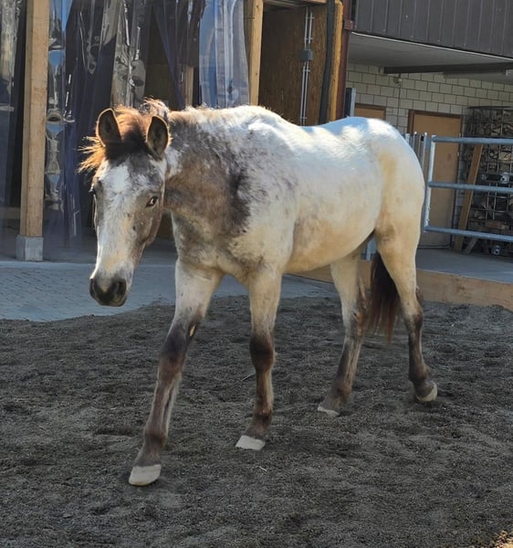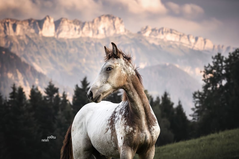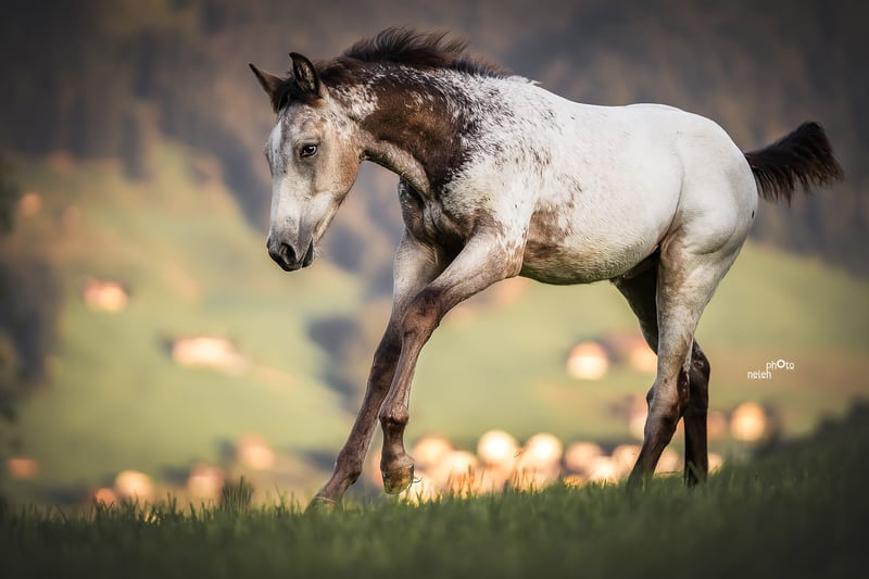Lewis of Steepy Hillock is a Buckskin Appaloosa with a striking coat, a lush mane and tail, and excellent conformation. He has been well socialized by his current owner, familiar with everyday routines; he knows the basics of foal handling, is accustomed to all land and construction machinery, and is calm and cooperative when tied, groomed, or having his hooves picked out. His greatest asset is his very child-friendly nature! Additionally, he has already been lunged with a saddle pad and girth, and he is used to walks through the village, even alone. Lewis is very well-behaved for his age, has a lot of potential, and is at an ideal age for further training. Of course, he can also be a bit cheeky — which gelding isn’t at that age?! Lewis descends from our wonderful breeding mare Topas, who has passed on her very kind, human-oriented, affectionate, well-mannered temperament, and excellent trainability to all her foals. An adult brother of Lewis has already been backed and is also developing into a lovely family horse. He was sold as a weanling and spent about a year on a large foal pasture before moving to the private open stable of his current owner. Sadly, and with a heavy heart, she has to part with him due to health reasons. As breeders of Lewis, we support her in finding new loving homes for him — we are acting as Vermittler (intermediary), not as sellers. For Lewis, we are seeking a final home with a family environment and people who appreciate what they are getting with this wonderful, healthy young horse. His age and his very conscientious upbringing during his foal and young horse phase are significant advantages for this handsome fellow in Appaloosa coat. Are you looking for a solid, attractive, and characterfully sound young horse? Your search ends here! Contact us, and we will arrange a viewing appointment. The horse is located in Eastern Switzerland. More information about our Appaloosa breeding and Lewis’s dam can be found on our website felihof.ch. We breed Foundation Appaloosas — so Lewis is a genuine Indian Pony! Please note that this is a price indication with slight room for negotiation. Lewis comes from responsible breeding and is a purebred Appaloosa. His price reflects his quality accordingly.