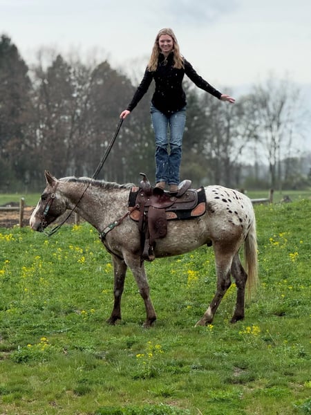 ONLINE AUCTION Place your bids at www.PlatinumEquineAuction.com Starting Bid $3500 Auction ends May 18th, 2025 Need a new saddle? Check out White Rock Saddles on our website or Facebook! I am excited to introduce A SILVER SOL WEEDO, or Silver for short. Here’s a stunning roan varnish pony of the americas with an adorable blanket on his hind quarters. He is a registered POA gelding who stands 14.1hh at 4 years old. He is out of laced in silver who is sired by The Silver Kid who is a hall of fame pony and his sire is TC IMPULSIVE WEEDO, who has sired many show ponies. Silver is extremely affectionate and personable. He loves people and attention. Silver is alert and enjoys a job! He’s a stellar mover with 3 solid gaits and the best flying lead change around. Silver has a beautiful floaty trot, a smooth canter and a soft mouth. He knows how to work on and off of seat and leg pressure. He is extremely soft in the mouth, you can pop a halter and lead on him or a simple neck rope. Silver is jumping around and does so in amazing form. He keeps a quiet canter to the jumps and jumps in stunning form. He loves outside rides! He’s great on the grass hunt field and the trails. His potential is endless. He’s an absolute favorite among the big kids and adults at the farm. If you want a touch of color, a can do attitude and breeding to match Silver is your man! Silver lives in Howell, MI 48855 please call or text Ellesse Schwartz at 248-390-6831 for more information. ONLINE AUCTION Place your bids at www.PlatinumEquineAuction.com Starting Bid $3500 Auction ends May 18th, 2025 Need a new saddle? Check out White Rock Saddles on our website or Facebook!