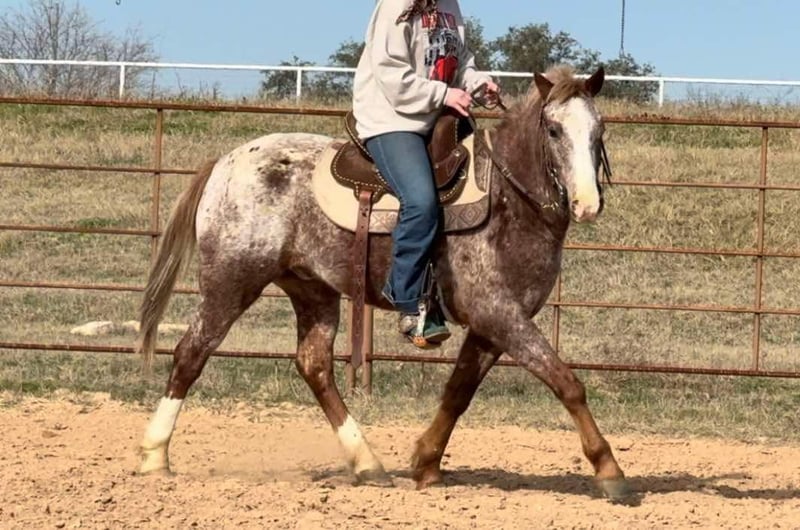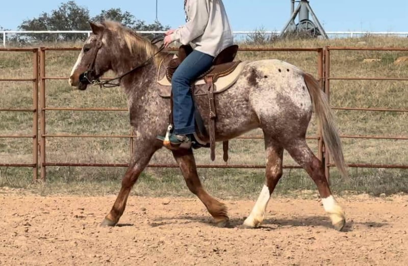 ONLINE AUCTION Place your bids at www.PlatinumEquineAuction.com Starting Bid $3500 Auction ends February 16th, 2025 Need a new saddle? Check out White Rock Saddles on our website or Facebook! Bambino aka “Bamb” is a 13.3H, 5 yr old Appaloosa gelding. Bamb is the cutest little step up pony for a handy youth or adult looking for something COMFY, small and fun! He is put together super correct and is one of the most handsome little app ponies we’ve ever represented! He has spent the last couple years as a handy kid playday horse, once they were ready for bigger performance horses, he moved on to a trail pony for a younger adult lady! Not many ponies have the handle this guy does! He’s broke like a seasoned big horse, very light to ride around, one hand broke and stops excellent! Bamb is EXTREMELY comfortable and has very floaty gaits! With a little more training, he’d easily make a little breakaway / rope horse prospect as he naturally wants to stop! He’d also be the perfect little rodeo horse for the handier kids wanting something fun and athletic!! Bambino goes the speed you ask, when you ask of him and is easy to ride and get along with. He’ll walk through water, and stays quiet on trails and in the arena. He’s happy to do any job you put him to and will go all day if you need. Bamb is NOT your typical “hot” pint sized jar of fun. He is calm, cool and collected and will never go faster than you ask! He’s NOT a “blown up” playday pony by any means. He’s very respectful and only really wants to please. Many horses his size are yee yawed around on by kids and as a result are hot and fractious to ride. NOT Bamb! He’s been rode by very respectful, handy kids that have rode him correctly! Being that he’s only 5, we do suggest an experienced rider only due to the fact he is pretty handy and athletic! He loads, leads, bathes, ties good and is UTD on feet, teeth and coggins! You don’t want to miss this unique opportunity to own an extremely put together, gorgeous little app gelding! Watch his video and go to his website page northtexashorsecompany.com/bambino for more pictures and footage! Please call Blair with North Texas Horse Company for more info at 817-757-3046. We LOVE to talk about him! We are located in Weatherford, TX and can help arrange affordable shipping to anyone!! ONLINE AUCTION Place your bids at www.PlatinumEquineAuction.com Starting Bid $3500 Auction ends February 16th, 2025 Need a new saddle? Check out White Rock Saddles on our website or Facebook!