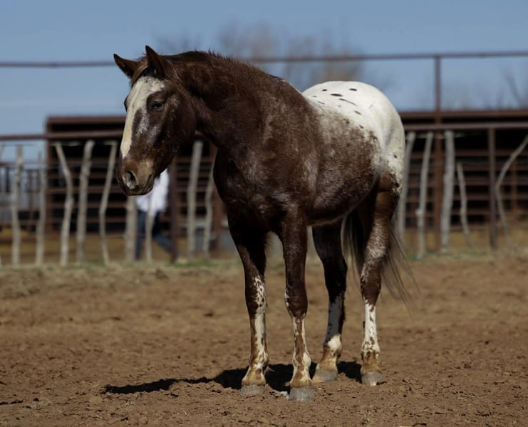 ℳ𝒶𝓇𝒸𝒽 ♦️𝐑𝐈𝐃𝐄𝐑'𝐒 𝐂𝐇𝐎𝐈𝐂𝐄♦️ Happening now thru MONDAY | MARCH 9th - Available EXCLUSIVELY on HorseBid's website! For more details and to register visit: www.Horsebid.com CONSIGNOR CONTACT: Real Deal Horses 406-570-4936 LOCATION: Ripley, OK BREED: Appaloosa REGISTERED: No REGISTERED NAME: Tony COLOR: Chestnut HEIGHT: 14.1 AGE: 6 GENDER: Gelding Tony is a 14.1 hand Appaloosa gelding with the coolest markings! Eye catching leg patterns and those big polka dots across his hip that make him stand out in any crowd. He’s a handsome, well built gelding. Tony is gentle, quiet, and extremely willing. He’s been ridden extensively on the trails, through town and traffic, and around dogs, goats, and pigs. Tony is a handle tool on the ranch. Sorting, gathering, roping, doctoring, you name it. Will side pass beautifully to open and shut gates, has a nice one hand neck rein, and the cutest rocking chair lope you’ve ever seen. Stands patiently for the farrier, and is great to saddle, tie, load, and bathe. He has excellent ground manners and is truly a pleasure to have around the barn. He’s not chargy, he’ll step up and go to work when asked, or slow down and take care of someone who’s still learning. He’s confident with tarps, ropes, balls, and all the “circus” activities. Whether you’re looking for a dependable ranch horse, trail partner, 4H mount, rope or gymkhana prospect, Tony is the kind that checks the boxes. Don’t miss out on this good minded, versatile gelding. Call Trevor at 406-570-4936 to schedule a time to come ride him or arrange a PPE, Nationwide transportation can be arranged.