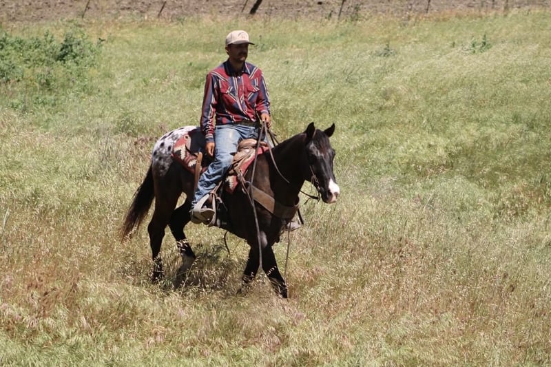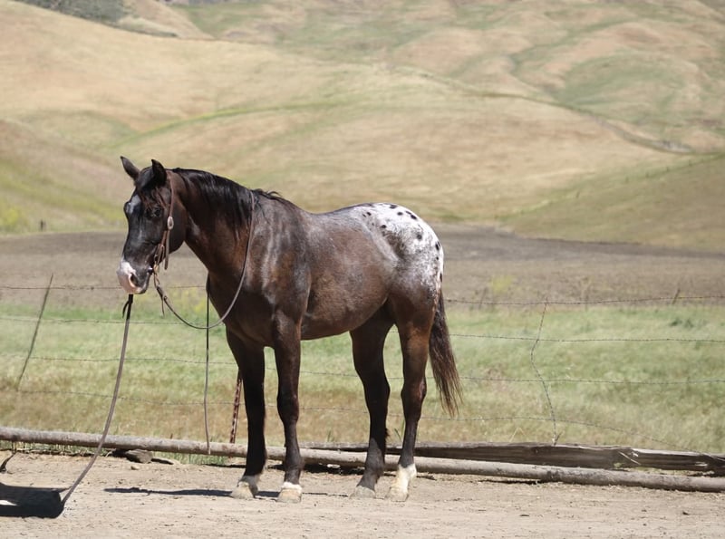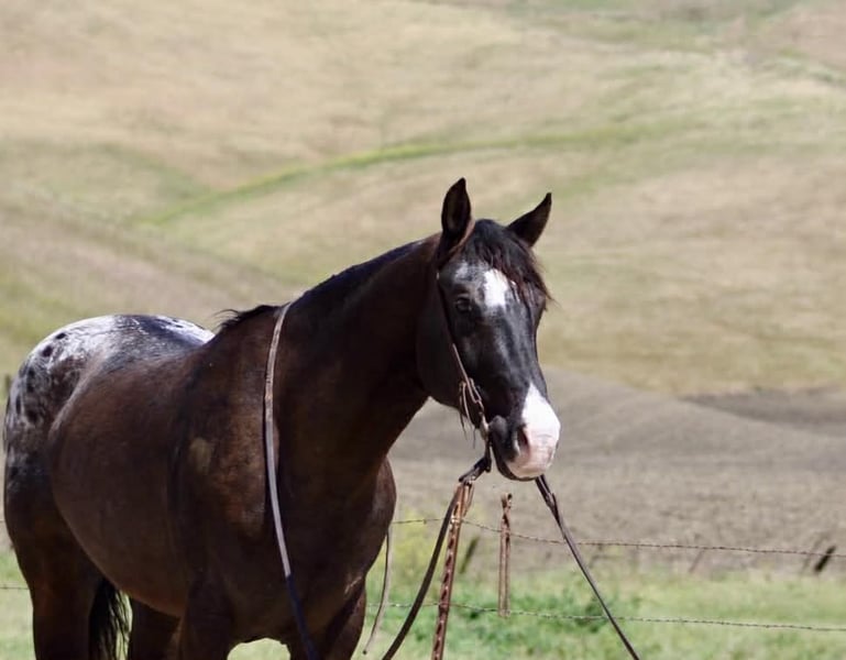 "AVAILABLE ON ONLINE HORSE AUCTION AT www DOT PlatinumEquineAuction DOT com BIDDING OPEN NOW thru SUNDAY | APRIL 19TH! *Final price will be determined on auction site* CONSIGNOR CONTACT INFO: Longhorn Ranch 831-537-1915 LOCATION: Paicines, CA Comet The Classic Look of a Traditional Appaloosa Comet is 6 years old Appaloosa gelding that’s been started right and built on a solid foundation—the kind that gives you confidence every time you step on. Standing 15 hands, he’s a handy size with a good presence. He’s gentle, easy to get along with, and has a willing attitude that makes him enjoyable every ride. In the arena, Comet rides around nice and correct. He lopes comfortable circles, has a smooth, easy stop, backs soft, and is starting to put a turnaround together. He stays relaxed, listens well, and gives you a good, honest feel. Outside, he’s been exposed to a lot. He’s been through obstacles, rides down busy streets, and handles traffic and commotion without getting worked up. He’s been hauled and does well whether he’s with a group or out on his own—just goes on about his business. He’s been around cattle and ranch life and takes it all in stride with a willing mindset. Not overdone, just honest and dependable with the right kind of start. Under saddle, he’s responsive and uncomplicated. He moves off your leg, and keeps a comfortable pace that makes him easy to enjoy. On the ground, he’s simple—good to handle, tack up, haul, and be around. Comet is a great fit for someone wanting a gentle, straightforward gelding that’s easy to ride and ready to keep going. If you want good-minded gelding that’s seen enough to be enjoyable and keeps getting better where it counts. Located in Paicines, CA Shipping available nationwide Longhorn Ranch Dina 831-537-1915