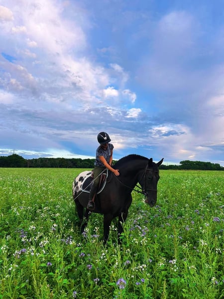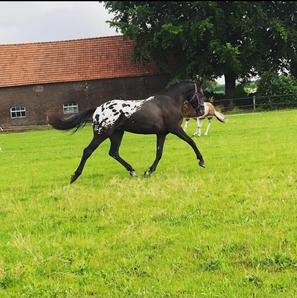 For sale: a stunning Appaloosa gelding, born in 2018. The black coat with distinctive markings makes him stand out, and his friendly, balanced temperament adds to his appeal. Standing at 16.1 hh, he is well-suited for a variety of disciplines. Whether for leisure riding, dressage, or small jumping competitions, this gelding shows great potential and eagerness to learn. He is healthy and well cared for. I am happy to provide more information and invite you for a personal impression.