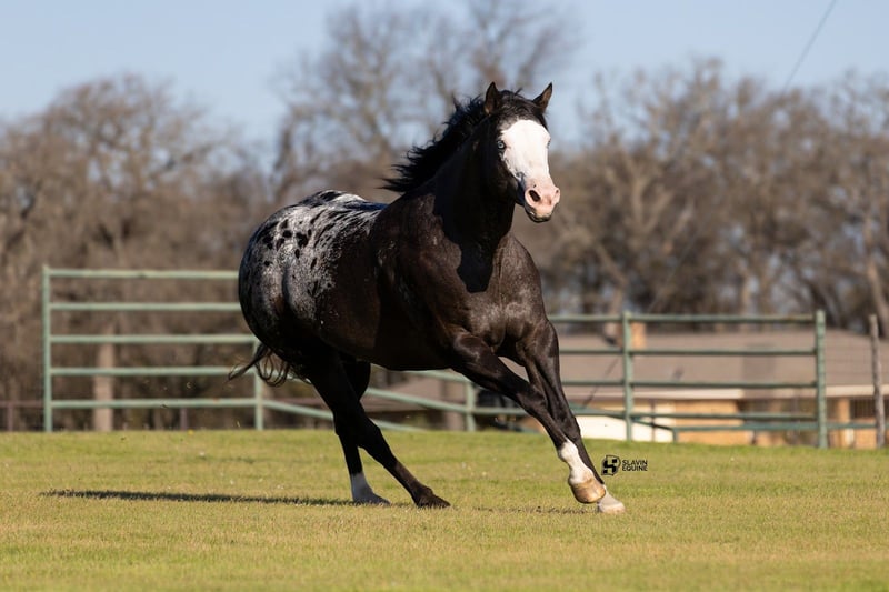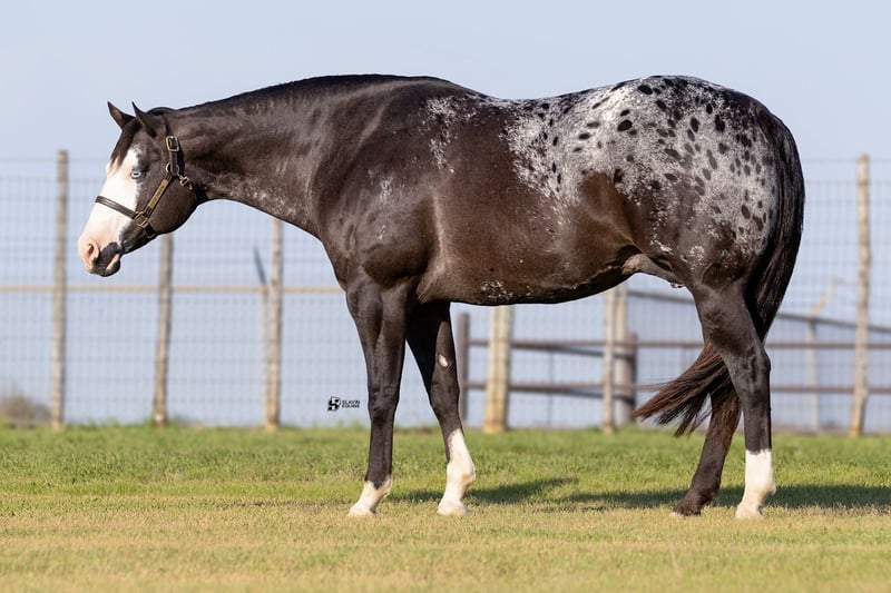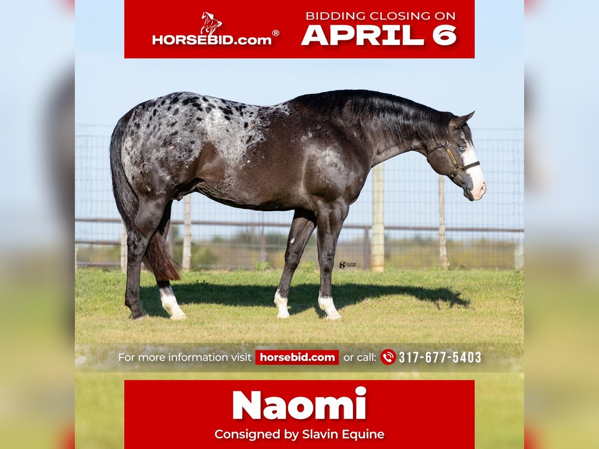 🌟𝑨𝒑𝒓𝒊𝒍 𝐀𝐋𝐋 𝐒𝐓𝐀𝐑 𝐋𝐈𝐍𝐄𝐔𝐏🌟 Happening now thru MONDAY | APRIL 6th - Available EXCLUSIVELY on HorseBid's website! For more details and to register visit: www.Horsebid.com CONSIGNOR CONTACT: Slavin Equine 317-677-5403 LOCATION: Whitesboro, TX BREED: ApHC REGISTERED: Yes REGISTERED NAME: Rewarded In Jewels COLOR: Black Appaloosa HEIGHT: 16.1 AGE: 12 GENDER: Mare If you’re looking for a mare that combines beauty, presence, and personality, Naomi is sure to impress. With her dark, smoky coat, bold bald face, striking blue eyes, and a big, beautiful blanket, she is nothing short of stunning! Naomi is the kind that instantly turns heads wherever she goes. A registered ApHC mare, sired by Brokers Reward and bred by the legendary Iron Horse Ranch, she is a true reflection of elite quality and proven consistency. This is a big, shapely mare with substance and balance, paired with a professional, easygoing attitude that makes her a pleasure to have in any barn. But Naomi offers far more than just looks—she has an exceptional personality to match. She is incredibly kind, gentle, and people-oriented, thriving on attention and affection. Her sweet nature truly sets her apart, and she has proven herself to be an outstanding mother. At her side is her 2026 ApHC palomino colt, “Johnny,” a standout in his own right. Born February 13th, and sired by the accomplished Tru Legacy (earner of $13,000+ and 3-Time Reserve World Champion), Johnny is already displaying excellent conformation, a kind eye, and a willing disposition. With his white face, four white socks, and bold blanket, he is sure to turn heads wherever he goes. He has begun halter breaking and has been straightforward and eager to learn every step of the way. Naomi has been confirmed in foal to The Last E, with a last breeding date of February 23, 2026, and an expected due date of January 29, 2027. Palpation videos are available in the gallery above. This offering is a true 3-in-1 opportunity: * Naomi (proven, quality mare) * Her 2026 palomino colt at side * Foal in utero by The Last E (2x AQHA World Champion, 5-panel N/N) All paperwork is complete and in perfect order for the mare, the colt, and the foal in utero. We are happy to assist with shipping anywhere in the United States or even internationally! Naomi and her sister Wynona have been together long-term and get along exceptionally well, as do their foals. While they would happily transition to a new home together, Naomi is adaptable and integrates easily with other mares. Come visit us in Whitesboro, Texas, and see for yourself why this stunning, sweet mare and her standout colt leave such a lasting impression. For more information, contact Parker at 317-677-5403.
