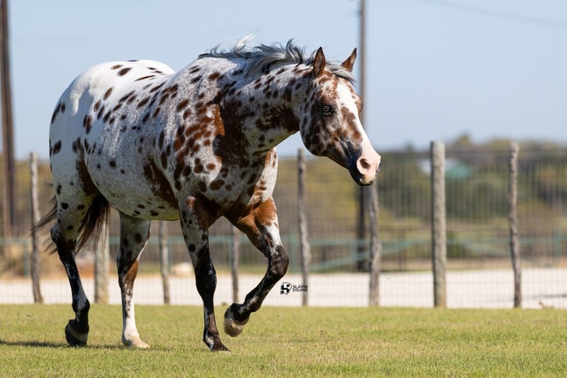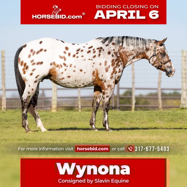 🌟𝑨𝒑𝒓𝒊𝒍 𝐀𝐋𝐋 𝐒𝐓𝐀𝐑 𝐋𝐈𝐍𝐄𝐔𝐏🌟 Happening now thru MONDAY | APRIL 6th - Available EXCLUSIVELY on HorseBid's website! For more details and to register visit: www.Horsebid.com CONSIGNOR CONTACT: Slavin Equine 317-677-5403 LOCATION: Whitesboro, TX BREED: ApHC REGISTERED: Yes REGISTERED NAME: Brokers Dreamcatcher COLOR: Bay Leopard HEIGHT: 15.3 AGE: 14 GENDER: Mare Meet Wynona! It’s not often you come across a leopard mare as boldly colored and uniquely marked as Wynona—and rarer still to find one with a disposition this exceptional. “Brokers Dreamcatcher,” a registered ApHC daughter of Brokers Reward, bred by the legendary Iron Horse Ranch, is nothing short of breathtaking. From her unique amber eyes to her vividly spotted coat, Wynona is the kind of mare that instantly captures attention wherever she goes! Wynona is a substantial, beautifully made mare with all the size, shape, and bone you could ask for in a broodmare. She represents the kind of quality, presence, and consistency that breeding programs are built around. As striking as she is, her personality may be even better. Wynona is an absolute sweetheart—gentle, kind, and incredibly easy to be around. She is a true professional in every sense, making daily handling effortless and enjoyable. Her calm, willing nature has made her a barn favorite, and it’s clear she is passing those qualities on to her offspring. At her side is her 2026 ApHC dun filly, “June,” and she is every bit as exciting. Born January 26 and sired by the accomplished Tru Legacy (earner of $13,000+ and 3-Time Reserve World Champion), June has inherited her dam’s signature amber eyes along with that same sweet, people-loving personality. She is affectionate, curious, and absolutely thrives on attention—an outstanding young filly with a bright future ahead. She is halter broke. Wynona has been confirmed in foal to The Last E, with a last breeding date of February 6, 2026, and an expected due date of January 12, 2027. Wynona has proven to be an easy, reliable breeder—settling quickly and carrying with ease. Palpation videos are available in the gallery above. This is a standout 3-in-1 opportunity you don’t want to miss: * Wynona (exceptional leopard mare and proven producer) * Her 2026 dun filly at side * Foal in utero by The Last E (2x AQHA World Champion, 5-panel N/N) All paperwork is complete and in perfect order for the mare, the filly, and the foal in utero. We are happy to assist with shipping anywhere in the United States or even internationally! Wynona and her sister Naomi have been together long-term and get along exceptionally well, as do their foals. They would make a phenomenal pair to keep together, but Wynona is adaptable and transitions seamlessly into new herds and environments. Come visit us in Whitesboro, Texas, and see for yourself why this stunning, sweet mare and her standout colt leave such a lasting impression. For more information, contact Parker at 317-677-5403.