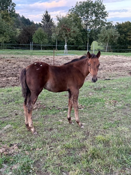 For sale is a foal of the Appaloosa breed, born on May 30, 2025. The mare is registered with the APHCG in Stud Book 1 and is a premium mare, standing approximately 15.6 hands (156 cm). The sire is a successful show Quarter Horse stallion, "CC Nite Rider" (direct son of GXnner Special Nite). The foal already demonstrates very elegant movement and has an excellent conformation. She is kept in a species-appropriate herd with other foals and is well cared for. If you are looking for a promising young horse for sport or leisure, she is the perfect choice. No known illnesses or allergies. An AKU (pre-purchase veterinary examination) can be arranged. Feel free to call or send a message to 0157 36803742. All information is provided without guarantee; prices are subject to change. Transport can be arranged, and online purchasing is possible.