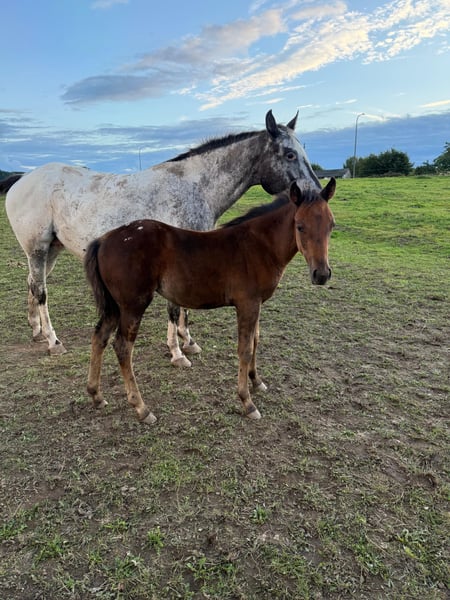 Vente d'une pouliche Appaloosa née le 30/05/2025. La mère est inscrite dans le registre des poulinières de l'APHCG (classe 1) et est une poulinière primée avec une taille au garrot de 156 cm. Le père est un étalon Quarter Horse performant en concours, « CC Nite Rider » (descendant direct de GXnner Special Nite). La pouliche montre déjà de très belles allures et possède une conformation remarquable. Elle vit dans un groupe avec d’autres poulains, dans des conditions respectueuses de son bien-être, et est parfaitement soignée. Si vous recherchez un jeune cheval prometteur pour le sport ou la randonnée, elle est faite pour vous. Aucune maladie ou allergie connue. Une échographie de contrôle (AKU) peut être réalisée sur demande. N'hésitez pas à appeler ou à envoyer un message au 0157 36803742. Toutes les informations sont données à titre indicatif, sous réserve de modifications, transport possible, achat en ligne envisageable.