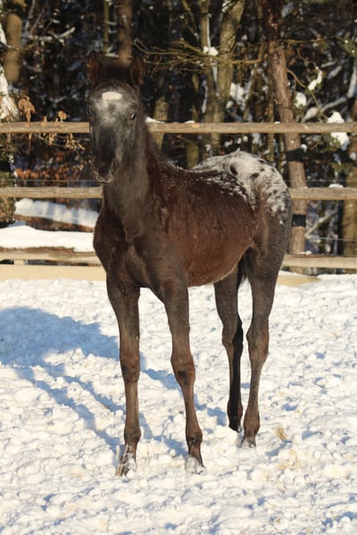 Due to cancelled reservation our filly is looking for her own person again! On 23th of September 2025 a black Pintaloosa filly with a cute blanket was born, sired by Appaloosa stallion and out of a Paint mix dam. The foal will have no pedigree issued by us, but will be eligible for a Pintaloosa registration. Both parents are disease-free (6-panel negative) and have no allergies, defects, or behavioral issues. Sire is our stallion RB Rock Me Juro (barn name Juro). He's a bay few spot, no grey. Him being a few spot makes him homozygous for leopard complex gene (also tested). Juro's pictures are shown: 11-12 Dam is our Paint mix mare Luna, an amazing riding companion with amazing personality. Luna's pictures are shown: 13-14. Maxie will be weaned in early March and ready to leave to her now home soon after. She will be equipped with passport, microchip and EIA blood test. All of our foals are raised in a safe and caring environment, with plenty of human interaction. By the time they leave our ranch, they are well-handled and familiar with all the basic - foal ABC. She's available for early reservation with a contract! If she caught your eye, you have an amazing opportunity to own a gorgeous filly with amazing potential for a loving family horse and irreplaceable riding companion. more pictures of her: https://www.facebook.com/media/set/?set=a.1876381739886578&type=3 Don't hesitate to contact us through contacts listed below! ******** Spots N Dots Ranch is home to colorful Appaloosas and Quarter Horses bred for soundness, smooth rides, and solid minds. We don’t chase ribbons — we raise horses with heart, health, and soul. Dotted with Excellence. About us - we are a small family ranch, we treat our animals as family members, and we are always prepared to make agreements with our costumers to satisfy both parties. We have many experiences with selling/purchasing horses abroad, so we're more than happy to help our potential costumer with providing information regarding international purchase of a horse. Our foals can be found all around Europe (Germany, Hungary, Croatia, Poland, Greece, Bulgaria, Czech Republic ..) Feel free to scroll down our Youtube chanel to get a little idea of our work and animals: https://www.youtube.com/@spotsndotsranch9658/videos ********* We are located in 8254 Globoko, Slovenia. You can message us on +38631748061 (Whatsapp) or send an e-mail to spotsndotsranch@gmail.com You can also message or follow us on Facebook - Spots N Dots Ranch Avoid messaging us through E-horses, because we don't come around often. Contact us via options listed above (Whatsapp, E-mail or Facebook). Serious inquiries only please!
