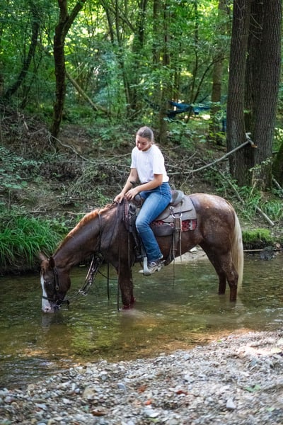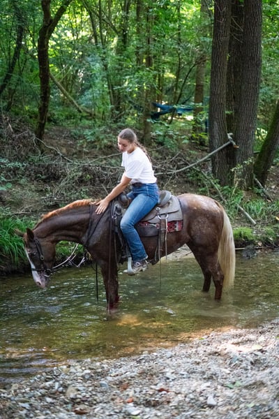 Cavalla incrocio Quarter Horse x Appaloosa. 11 anni – 1,50 m al garrese. Adatta a passeggiate e trekking anche impegnativi, sia da sola che in gruppo. Facile nella gestione e affidabile.