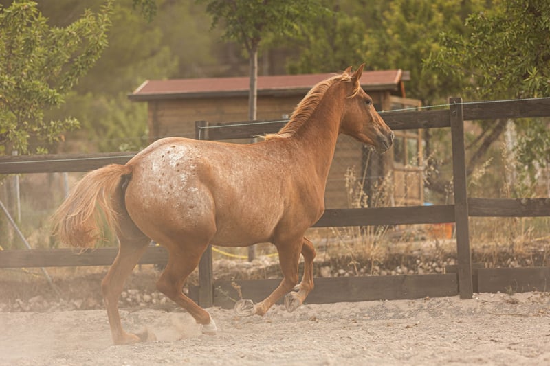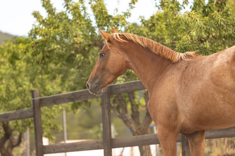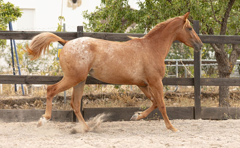 ✨ ARIZONA – Young filly with a golden soul and a heart of gold ✨ Meet ARIZONA, a young filly born in March 2023, a cross between Appaloosa, KWPN, and Spanish bloodlines. She has a Spanish passport and is eligible for auxiliary registration with ANCADES (CDE -Spanish Sport Horse Registry). Arizona stands out for her deeply human-oriented character. She is incredibly affectionate, curious, and close to people. She always wants to be near, to participate, to be involved. She just loves attention and thrives on human connection. She is gently beginning her exploration of the world. She knows the basics: • Comfortable with brushing and showers • Picks up her feet well • Excellent with the equine podiatrist (visits every 6 weeks) • Dewormed and vaccinated • Ties calmly • Has started basic lungeing • Goes on lead rope walks in the forest Like all our horses, Arizona is raised in an environment that prioritizes respect, trust, and emotional well-being. Our ethical training starts from the ground up, focusing on creating a real bond between horse and human. Natural and complete diet: • Hay available 24/7 • Alfalfa • Alpine herb cobs • Mash • Mixed grain flakes Her golden-red coat and blonde mane give her a striking appearance, but what truly captivates is her expression, her closeness, and her joy in sharing space with humans. Arizona is ideal for someone looking to start a beautiful story from the beginning – with patience, love, and the desire to build a deep, lasting connection. Want to meet her? Contact us via phone or WhatsApp for more information, photos, or videos.