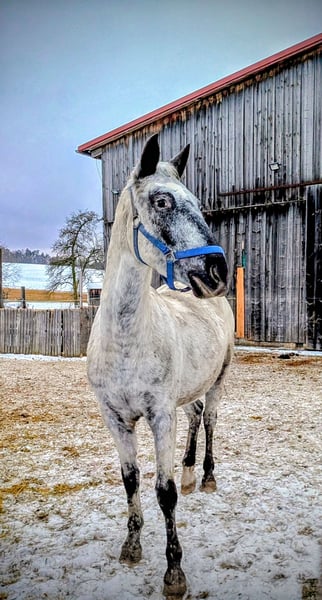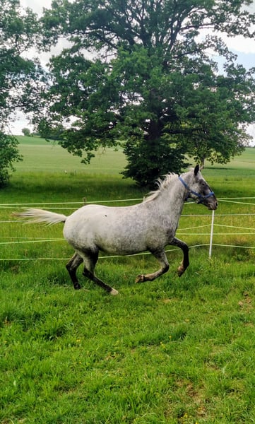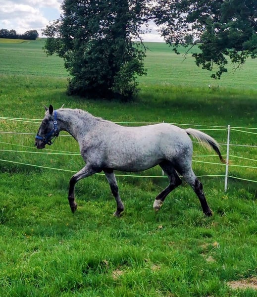 Verkaufe im Auftrag junge Appaloosa x Knabstupper Stute. Gesund, im Herdenverband aufgewachsen, roh zum selbst ausbilden. Halfterführig, zuverlässiges Füße geben muss geübt werden. Wegen Krankheit des Besitzers günstig abzugeben. Platz vor Preis.
