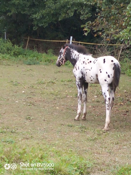 Beautiful Appaloosa Mare – Year of Birth 2023 For sale is an enchanting black leopard Appaloosa mare, born in 2023. This elegant mare impresses with her distinctive coat pattern and friendly demeanor. She is healthy, well-socialized, and shows promising potential for future riding or breeding purposes. The young mare has been lovingly raised and is already curious and open-minded towards people. She is suitable for both ambitious riders and for breeding. If you are interested or have any further questions, please feel free to contact me. I would be happy to arrange a viewing so you can meet her in person!