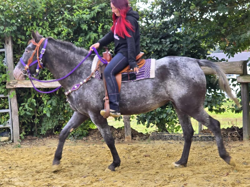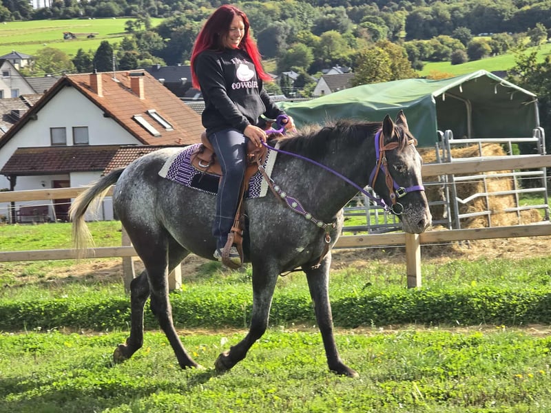 Appaloosa Mare Leisure Partner BEAUTY just started under saddle Age: 4 years Height: approx. 1.56 m Price: 5500 Vet check: available ✨ About the mare: This beautiful Appaloosa mare captivates with her striking coat pattern and friendly disposition. She is well-behaved in handling, calm under saddle, and always shows a strong affinity for people and a willingness to learn. With her charming nature, she is a fantastic leisure partner who is sure to attract all eyes. Perfect for: Riders looking for a young mare that excels both on trails and in leisure activities and can still be further developed. Our horses: – regularly dewormed – cared for by farrier & osteopath Shop: Western saddles, bridles, accessories Transport & accessories can be organized cheaply upon request Our service: ✅ 3-month exchange right ✅ Trial ride: €35, each additional horse €25 (deducted from purchase on the same day) ✅ €100 instant discount for pickup/transport on the same day ✅ Personal & honest advice Inquiries please only by phone: 0171 – 4001968 Available daily from 8 AM to 8 PM ⚠️ No email or WhatsApp ⚠️ All information without guarantee