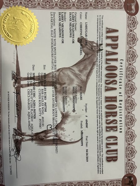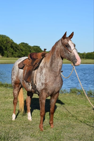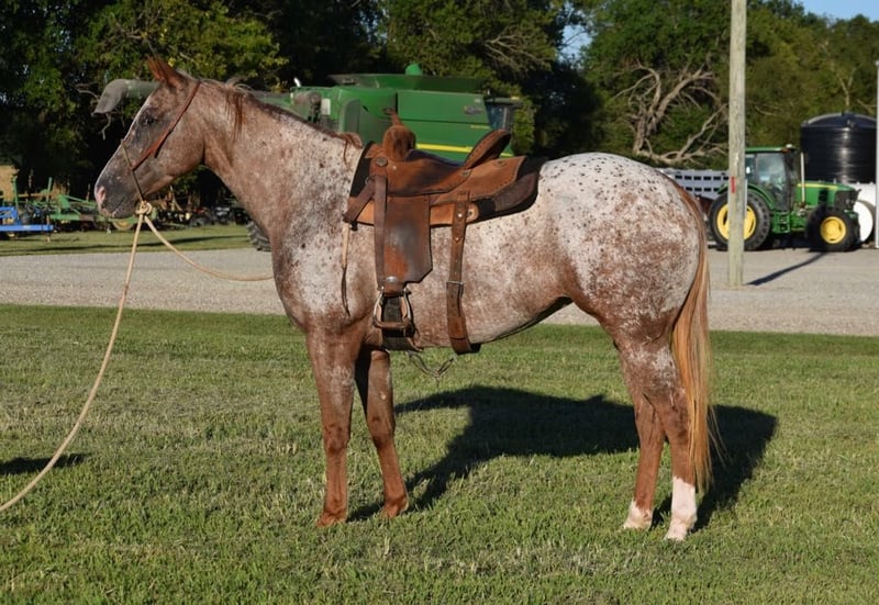 ONLINE AUCTION Place your bids at www.PlatinumEquineAuction.com Starting Bid $3500 Auction ends October 13th, 2024 Need a new saddle? Check out White Rock Saddles on our website or Facebook! LM Sugarcube. Aka Sugar. Is a gorgeous 5 yr old registered aphc mare. Standing 15.2, 1100 lbs. Her breeding is hard to find in a Appaloosa package! Cutting bred top and bottom playin stylish, doc’s oak, chic please to name afew all on her papers! Sugar is as sweet as they come stands tied for hours , loads like a dream hauls great. Eats and drinks on the road! Extremly easy to catch in a pasture! Comes running to you, and is wonderful in a herd. Not Marish at all . Sugar is an amazing trail horse goes over or through anything . Not spooky, loves crossing water . Quiet up front in the back or in middle. Will go out in her own. She was raised in a ranch and has Lakota of experience with cattle and ranching duties. Sugar has a lifetime ahead of her and would make an outstanding performance horse if someone wanted to go that way as well lopes circles stops. Big turn around. She rides in a side pull or a bosel. Prefers those to a bridle clean slate. Sound no bad habits ready to make a family extremely happy. Located in Guthrie, OK. come take a look and try her, transport can be arranged! Contact JDT Ranch Megan 572-205-5282. ONLINE AUCTION Place your bids at www.PlatinumEquineAuction.com Starting Bid $3500 Auction ends October 13th, 2024 Need a new saddle? Check out White Rock Saddles on our website or Facebook!
