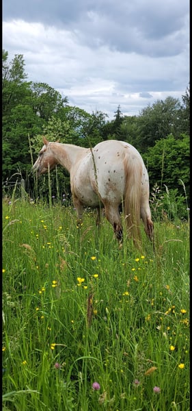 Available is a beautiful mare who will turn 9 years old this May. She is a reliable and well-schooled trail horse, suitable for both recreational riding and more experienced riders. She is fearless and well-accustomed to various situations (traffic, water, other horses, trailers, and farrier work). Appaloosa breed with a full pedigree.