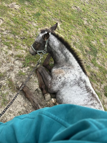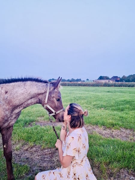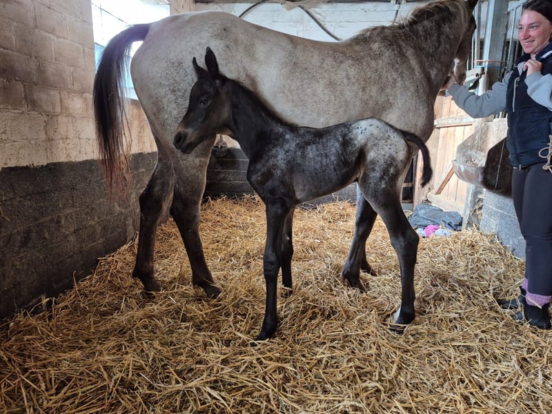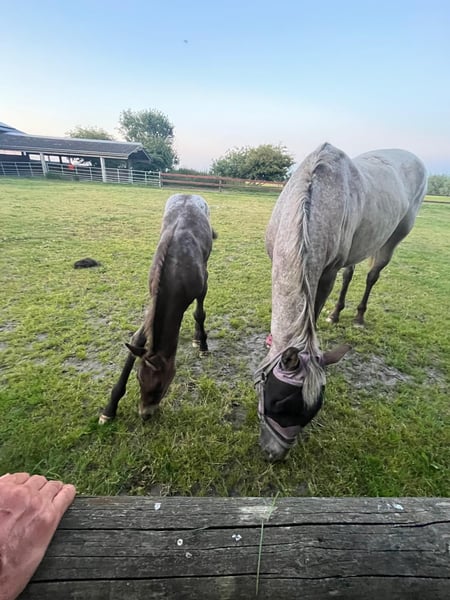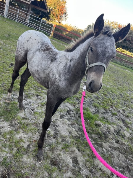 Absetzen / Stutfohlen in Sonderlackierung zu verkaufen Ich suche für mein Fohlen nach dem Absetzen ein tolles neues Zuhause. Amira ist am 26.05.2025 geboren. Ihre Mutter ist eine Appaloosa-Mix (ca. 155 cm groß) Ihr Vater (welcher nicht eingetragen ist) ist ein Holsteiner (Cocosinni/ ca 171cm ) Die Stute habe ich unwissenden tragend gekauft, daher habe ich keinen Deckschein, die Angaben zum Hengst stammen von der Vorbesitzerin. Amira ist ein elegantes Fohlen mit auffällig langen Beinen. Ihre Sonderlackierung hat sie von ihrer Mutter geerbt und macht Sie zu einem echten Hingucker. Das Fohlen ABC lernt sie kennen, spazieren gehen mit ihrer Mutter (auch an der Straße). Den Hufschmied hat Amira schon kennengelernt und auch schon mal in eine sanfte osteopatische Behandlung geschnuppert, als ihre Mutter behandelt wurde. Diese elegante junge Dame weiß sich zu präsentieren, im Umgang ist sie höflich, muss aber auch mal ihre Grenzen aufgezeigt bekommen. Fremden Menschen gegenüber ist sie zuerst etwas skeptisch, dann siegt sehr schnell die Neugierde. Ich suche ein passendes Zuhause für Amira, wo Sie optimal auf ihr weiteres Leben vorbereitet werden kann. Bei Fragen, meldet euch gerne bei mir.