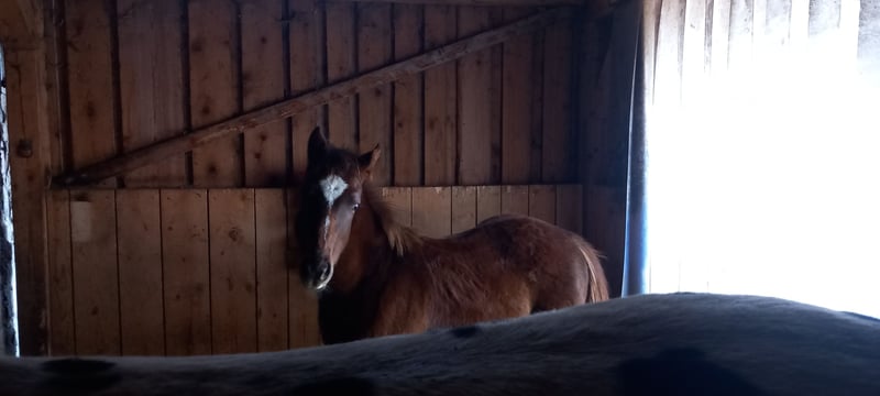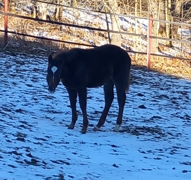 Ruhe, Gelassenheit und Fundament von seinem wunderbaren Vater der auf alle 9 momentan bekannten Panel negativ getestet wurde und trotz LP gesunde Augen hat gepaart mit Schönheit und Spritzigkeit seiner Rennsporterfolgreichen Vollblutmutter, mega schnell und schlau, wendig, genug Gummi und trittsicher wie eine Bergziege, das Ganze in absoluter Sonderfarbe, man darf gespannt sein was sich unter dem dicken chestnut Winterpelz verbirgt....einzelne Spots scheinen schon durch, er wird wohl vanish roan mit Spots werden (LP/lp) , hat alle Appi-Attribute....Zudem total selbstbewusst und mutig, menschenbezogen und freundlich. Will to please aber eigene Meinung. Fohlen ABC sitzt, Papier ist in USA beantragt. Ein Pferd für Kenner und Könner, nicht für jedermann. Kein Notverkauf, kann auch bleiben, wird dann als Hengstabwärter aufgezogen.