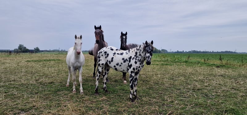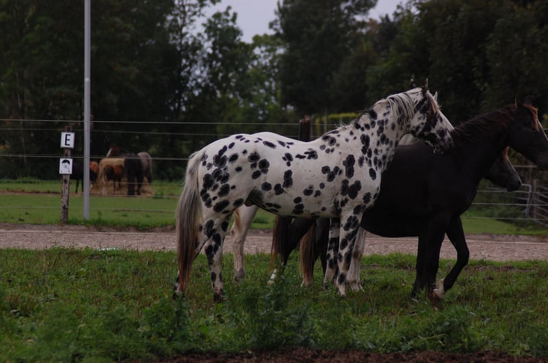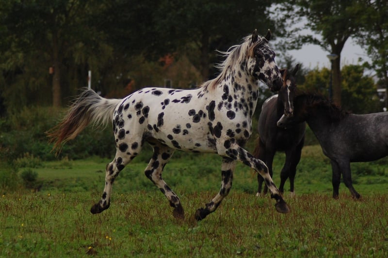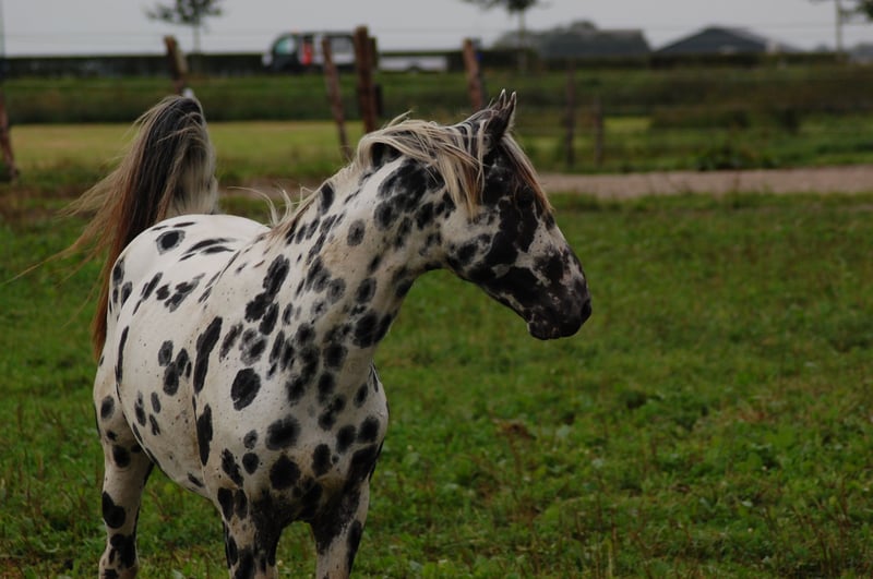 Dit paard steelt de show met zijn uitstraling en geweldige beweging. Uit de beste Nederlandse appaloosa bloedlijnen: Vader Nederlands 1e Premiekampioen Peru's First Class (met veel KWPN-bloed, zoals Krack C en Jazz) Moeder Ster merrie, reserve kampioen Moeders Vader 5-voudig Nederlands Kampioen Palousa Convenance (zijn vader is Gibraldi, de grote zwarte Grand Prix hengst die naar de Wereldbekerfinale ging met Edward Gall in Las Vegas) Heel lief en liefdevol karakter, een beetje verlegen. Kan aan een halster worden gereden, maar is nog groen in training. Wordt altijd in een groep jonge hengsten gehouden, met mensen om zich heen. Veel vrije beweging in de wei. Hij is nu op zoek naar een nieuwe eigenaar die met hem wil werken. Hoewel zijn moeder ook dressuurmatig gefokt is, houdt ze ook van springen, dus ik verwacht dat dit paard ook allround ingezet kan worden. Hij is een showman, hij is geweldig voor de camera en steelt de show met zijn indrukwekkende uitstraling. Ook andere jonge appaloosa paarden en pony's te koop.