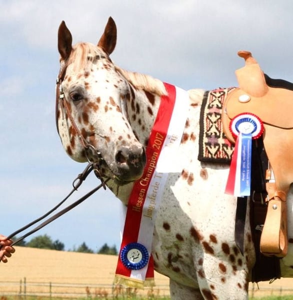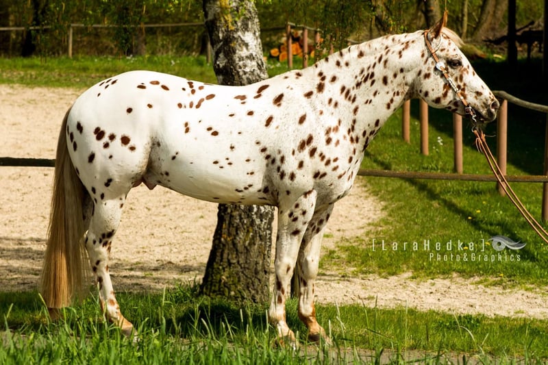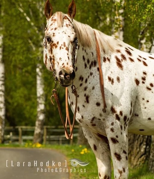 Noch auf der Suche nach dem perfekten Allrounder für Ihre Zucht? Unser Rusty besticht nicht nur durch Farbe und Charisma, sondern auch durch -ordentliches Fundament, starke Knochen und Hufe (läuft Barhuf) -einen klaren Kopf -liebenswürdiges, ausgeglichenes Temperament, die nötige Ruhe im Wesen -großrahmig (ca. 163cm), aber dennoch kompakt und wendig, viel Stop durch seine Reining/Working Cowhorse-Abstammung -viel Schweif & dicke Mähne Top 5 in the World 2017 Open Halter Aged Stallions Rusty hat sich natürlich auch unter dem Sattel bewiesen: -wurde geshowt in Halter, Hunter Under Saddle, Ranch Riding, Trail, Pleasure, EWU JuPf (u.a. bestes Jungpferd Basis und Trail 4-und 5. Jährig in Hessen) -5 PANEL N/N -TG von hervorragender Qualität (EU Besamungsstation Georgi) Rusty ist LP/lp – (trägt das Leopard-Gen) und hat sich seit vielen Jahren als absolute Bereicherung für die Appaloosa-Zucht erwiesen. Er vererbt auch bei einfarbigen Stuten erfahrungsgemäß zu ca. 80% Appaloosa Charakteristika (siehe Bildergalerie). Mehrere seiner Nachkommen sind außerdem unter anderem European Champions sowie Grand Champions und haben sich unter dem Sattel als unkompliziert und talentiert erwiesen. Bei Interesse schreiben Sie uns gerne eine Nachricht oder rufen Sie an! ...Mehr Infos/Fotos zu Rusty und seinen Nachkommen finden Sie auf seiner Facebook-Seite: https://www.facebook.com/profile.php?id=100063476020017
