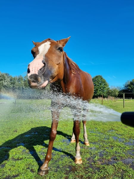 DUE TO A STOP IN HOBBY. BEAUTIFUL CHESTNUT GELDING WITH GOOD PAPERS. Fajro RJ is a 12-year-old star. Very well-mannered, very willing and people-oriented, playful, handsome, sweet, healthy, well-behaved and honest, but with more than enough temperament, sensitive, but not nervous. He has everything a true Arabian thoroughbred should have! Really your best buddy, he is truly there for you. Also very social with other horses, he can stand with any other horse. Comes when you call him. Puts his nose in the halter. Gets trimmed loose. Can park at the mounting block. Knows groundwork. You can just jump on him loose in the pasture. Easy to saddle. Always an easy horse, really. I have rarely if ever tied him, not even to saddle him. I have always ridden him bitless. Can be hosed off loose (when it’s warm, he just allows it)... He is well-behaved, but not a 'dead' or 'dull' horse. A nice temperament without nervousness. Therefore not suitable for a beginner! If interested, please contact directly at 0032480682068.