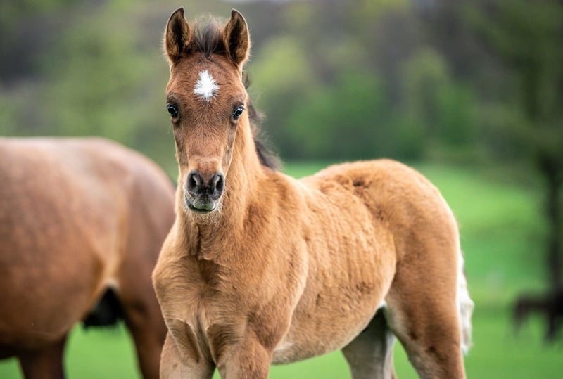 Stylish and extremely correct young Arabian colt in a bay jacket. Kalit is a very curious and open-minded foal, fearless, people-oriented and with a friendly character. He is growing up with other mares and foals and is excellently socialized. He has already learned the basics of foal training, i.e. touching everywhere, haltering, lifting legs, etc. It goes without saying that our foals are wormed regularly, are already microchipped and receive a pedigree certificate and an equine passport. If desired, he can continue to be raised by us or move to a new home from around October. Kalit would be delighted to receive a visit. Please contact us.