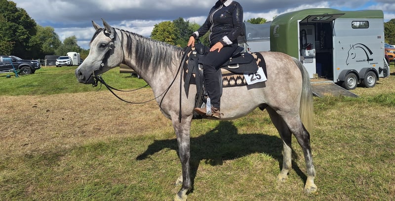 -Schimmel -ca. 1.62 -Wallach -06.01.2021 Zum Verkauf steht ein 5-jähriger polnischer Araber, der durch Qualität, Ausdruck und Leistungsbereitschaft überzeugt. Pustynny Plomień (Plomi) war 6 Monate im Vollberitt Freizeit/ Western (Januar–Juni 2025) und ist solide ausgebildet. Er wurde bereits auf EWU-Turnieren vorgestellt und konnte Platzierungen erreichen, wodurch er auch für den sportlichen Einsatz interessant ist. Er ist ein sensibles, intelligentes Pferd, das Sicherheit und eine klare, konsequente Führung benötigt. Unter einem ruhigen, fairen und fordernden Reiter zeigt er großes Potenzial und Arbeitsfreude. Kein Anfängerpferd – sondern ein Partner für jemanden mit Pferdeverstand, der ihn weiter fördern möchte. Videos auf Anfrage Standort: Clausthal Zellerfeld Probereiten nach Terminabsprache möglich 12.🥕🥕🥕€ VB