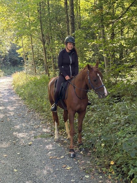 Super schöner kompakt, kräftig gebauter 6 jähriger Vollblutaraber mit einem Stockmass von 1.60 sucht den besten Platz. Er hat eine äusserst starke Hinterhand und läuft von sich aus in einer schönen Anlehnung. Er macht richtig Spass daher bei der Hallenarbeit. Er wurde vielseitig eingesetzt viel in Gelände mit auch drei Distanzritte, schwimmen im See, Gymnastik Cavelletikurs, Hallenarbeit, Longenarbeit am Kappzaum. Er hat ein ruhiges Gemüt. Er ist absolut verkehrssicher, ob Lastwagen, Traktoren oder ein Zug direkt an ihm vorbei fährt, macht ihm nichts. In den Anhänger steigt er gerne problemlos ein. Er lebt in einer Gruppe mit einem Wallach und einer Stute was ihm super gefällt. Er ist total unkompliziert im zusammen leben mit anderen Pferden. Momentan läuft er barhuf oder mit Klebebeschlag. Er ist ein richtiger Sonnenschein, welcher für jeden Spass zu haben ist. Und für seine Leckerlis alles macht. Dabei lernt er sehr schnell Neues, da er sehr clever ist. Aus Zeitmangel in letzter Zeit weniger häufig geritten.