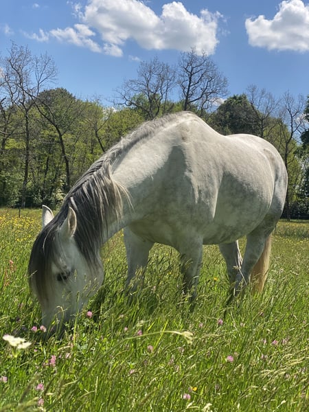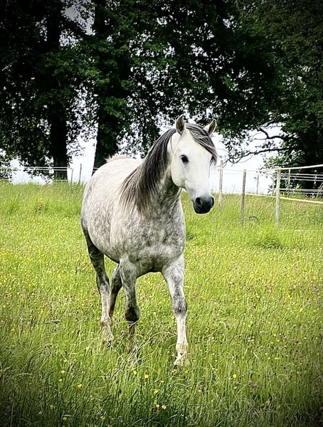 Das Pferd fürs Leben!! Iklil ist ein wunderschöner PSA PP Hengst, der neben einer kräftigen Knochenstruktur und einer natürlichen, harmonischen Muskulatur auch eine beeindruckende, lange Mähne hat, die so manchen Prinzen neidisch machen würde! Iklil weiß, dass er schön ist. Dennoch freut er sich immer, wenn man ihn beim Putzen daran erinnert… (okay, er ist ein bisschen hochmütig). Er hätte ohne Scham auch der Star in einer L’Oréal-Werbung sein können: „Denn ich bin es wert“ 😉 Gut, okay, er ist schön, das haben wir verstanden… aber Schönheit allein reicht nicht! Neben seinem Traumkörper besitzt er auch den passenden Charakter. Iklil ist ein exklusives Pferd, sehr anhänglich zu seinem Menschen, und wird alles für seinen Besitzer geben, wenn dieser ehrlich und offen mit ihm umgeht. Er träumt von einer Beziehung, in der Mensch und Pferd gemeinsam voranschreiten, Huf an Hand, auf dem Weg zu einer gemeinsamen, lichtvollen Zukunft! Wenn die Verbindung aufrichtig und voller Liebe ist, wird er Sie bis ans Ende der Welt begleiten… zumindest innerhalb seiner Möglichkeiten! Denn ja, obwohl seine Herkunft ihn für Langstreckenrennen vorgesehen hatte, hat Iklil entschieden, dass stundenlanges Laufen nicht sein Ding ist! Bei seinem ersten und einzigen Langstreckenritt (den er immerhin als 7. beendet hat) hat er sich am Gurt verletzt. Diese Aktivität ist heute für ihn ungeeignet. Nach diesem Vorfall ist eine Beule entstanden, die wir operativ entfernen ließen, um seinen Komfort zu gewährleisten. Heute geht es ihm sehr gut, aber seine Karriere im Distanzsport ist definitiv vorbei… zu seinem größten Glück! Ich denke, Iklils Motto lautet: „Morgens langsam, abends nicht zu schnell.“ Das bedeutet nicht, dass er faul ist: Er weiß, Energie zu zeigen, wenn es nötig ist… vorausgesetzt, die Aktivität gefällt ihm! Wir haben daher verschiedene Disziplinen ausprobiert, und wieder einmal hat er seine Meinung dazu geäußert. Ausritte: Die Landschaft genießen, in weiten Flächen spazieren gehen, einen entspannten Moment mit seinem Reiter teilen – das ist für ihn das Größte! TAP / Équifeel: DAS ist die Disziplin, die ihn zum Vibrieren bringt! Die Verbindung zu seinem Menschen vertiefen, immer weiter in der Kommunikation und bei kleinen Tricks werden… sein großer Spaß! Dressur: Das ist nicht seine Lieblingsdisziplin, aber er zeigt darin ziemlich angeborene Qualitäten. Für ihn ist es einfach… und cool! Springen: Ich will ehrlich sein: Mit ihm werden Sie keinen Amateur-Wettbewerb gewinnen! Einen Baumstamm im Wald überspringen: Okay. Eine kleine Linie auf 50 cm überwinden: Okay. Aber 1,10 m zu springen… da habe ich Zweifel! Da ich mich nie wirklich auf diese Disziplin konzentriert habe und er bei den Stangen gut mitmacht, könnte er wahrscheinlich noch mehr erreichen, als wir bisher gezeigt haben – ohne auf die Podeste der Elite-Clubs zu zielen 😉 Und schließlich… die Lieblingsdisziplin von Herrn Iklil: TREC! Hier zeigt sich sein wahres Können, seine Leidenschaft, sein persönliches Highlight. Es ist die perfekte Mischung aus allem, was er liebt: - POR: Gemächlicher Spaziergang, ruhiges Pferd, das die Karte, die Kompassuhr und die Zeitmessung ohne Stress erledigt (mit einem zu 100 % validierten GPS 😄) - MA: Eine kleine Dressurübung zur Erinnerung - PTV: Manövrierfähigkeit, Hindernisse, Bodenarbeit… alles, was ihm Spaß macht! Wie Sie sehen, weiß Iklil genau, was er im Leben will: - Auf der Weide in großen Gruppen mit Freunden leben - Einen Menschen haben, mit dem er große Abenteuer teilen kann - TAP, TREC, Ausritte, Dressur und ein bisschen kleiner Springen machen Wenn Sie denken, dass Iklil DAS Pferd Ihrer Träume ist, zögern Sie nicht, ihn in Nouvelle-Aquitaine, in Charente-Maritime (17) kennenzulernen. Mit seinen 9 Jahren und 1,53 m ist er bereit für große Pläne mit seinem zukünftigen Menschen!
