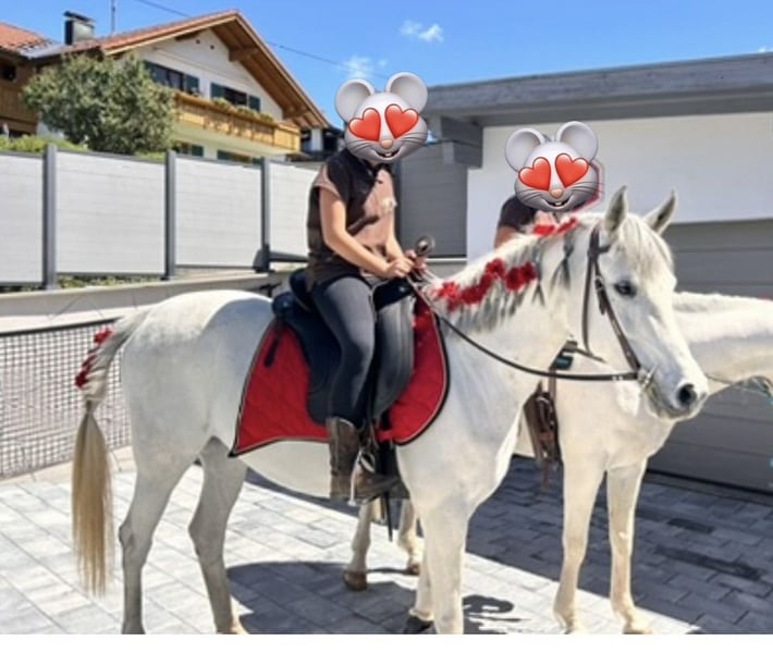 Unsere liebe, zierliche und feinfühlige Vollblutaraberstute sucht ein 5 * neues, passendes Zuhause. Kein Notverkauf – sie wird ausschließlich verkauft, da meine Tochter künftig komplett auf das Westernreiten umsteigt. Aufgrund ihrer zierlichen Statur und angenehmen Größe wurde sie überwiegend von Jugendlichen geritten, was ihr sehr gut entspricht. Sie ist ein ehrliches, sensibles Freizeitpferd, das sowohl entspannte Ausritte als auch die Arbeit auf dem Platz genießt. Rajana war bereits auf diversen Veranstaltungen dabei, ist brav im Umgang und für jeden Spaß zu haben. Die Platzarbeit wurde leider in den letzten Monaten aus Zeitmangel und wegen schwieriger Platzverhältnisse etwas vernachlässigt, lässt sich jedoch problemlos wieder auftrainieren. Sie ist englisch ausgebildet, zuletzt wurde jedoch an der Umstellung auf Western gearbeitet. Sie ist sehr menschenbezogen, fein an den Hilfen und ausgesprochen lieb im Umgang mit Kindern. Sie ist lauffreudig, ausdauernd und geht im Gelände gerne zügig mit, weshalb ich sie mir auch sehr gut für Distanz - und Wanderritte vorstellen kann. Bei zu wenig Arbeit und Auslastung zeigt sie rassetypisch etwas Übermut und testet gelegentlich, bleibt dabei aber stets gut händelbar. Sie hatte bereits ein Fohlen und war eine wunderbare, fürsorgliche Mutter. Haltung & Gesundheit: • Offenstall- und Boxenhaltung gewohnt • Schmiede- und verladefromm • Vorne beschlagen • Passende Hufschuhe für hinten werden mitgegeben • Regelmäßig entwurmt und geimpft • Zahnarzt war kürzlich da – alles in Ordnung • Keine bekannten Krankheiten oder größeren gesundheitlichen Probleme Rajana kann auf Wunsch mit komplettem Zubehör abgegeben werden. Ein 1 Jahr alter, sehr gut passender Western-Equiflexsattel kann gegen Aufpreis erworben werden. Sie wird ausschließlich in beste Hände abgegeben. Bei ernsthaftem Interesse freuen wir uns über eine Nachricht.