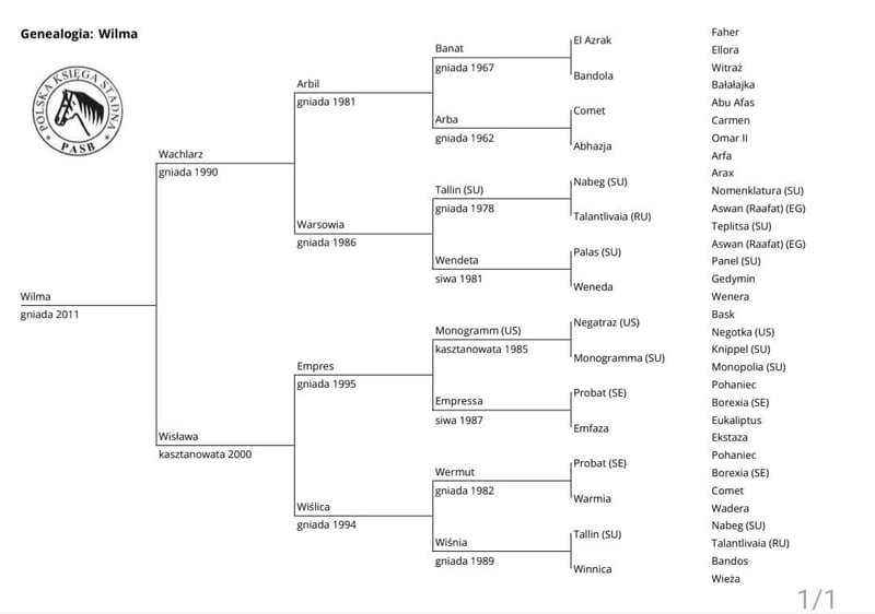 Zum Verkauf steht eine Stute zur Zucht Wilma mit herausragender, rein polnischer Abstammung. Die Stute verfügt über ein ausgeglichenes Wesen, ist im Umgang sicher und zudem eine großartige Mutter. Sie misst 150 cm im Widerrist. Sie steht in Polen.