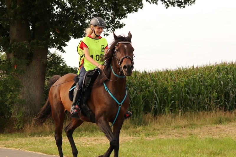 Por precio de invierno y para que pueda adaptarse a su nuevo hogar antes del nacimiento de su potro, BS Balalijka es una yegua árabe de color castaño oscuro, nacida en 2009. Está cubierta por el semental árabe egipcio de línea asil, BS Echnaton, para la temporada 2026. Se pueden visitar dos hijas de Echnaton nacidas este año en la finca. Un potro árabe de 3 años, de línea Rapp, ya está siendo montado de manera sencilla y sin problemas, y un hijo de 5 años, también de línea Rapp, está iniciando su primera temporada en pruebas de resistencia y ha sido aprobado para la selección de sementales. Balalijka ya ha tenido dos potros, uno de ellos por un semental Hannoveriano de la línea Weltmeyer. Tras su segundo potro, fue preparada para las pruebas de resistencia y, desde la temporada 20/21, ha acompañado a su jinete en competiciones de más de 93 km sin fallos. Destacan sus buenos valores de pulso y su rápida recuperación. En cada prueba de resistencia, ha terminado en el top 3. En julio de 2022, sufrió una cojera y fue llevada a la clínica, donde se encontró y extrajo un chip. Después, fue entrenada nuevamente con calma. No ha vuelto a presentar cojera y todos los chequeos posteriores han sido normales. En 2024 y 2025, ha permitido que dos jinetes jóvenes compitan en pruebas de resistencia. Balalijka demuestra ser amigable con los niños. En 2025, participó con su jinete en un campamento juvenil. El potencial de Balalijka es versátil. Puede continuar en la cría, dedicarse a la recreación, al deporte o convertirse en caballo de enseñanza, según lo que se decida. Actualmente, está en uso y puede ser probada en montas por interés.