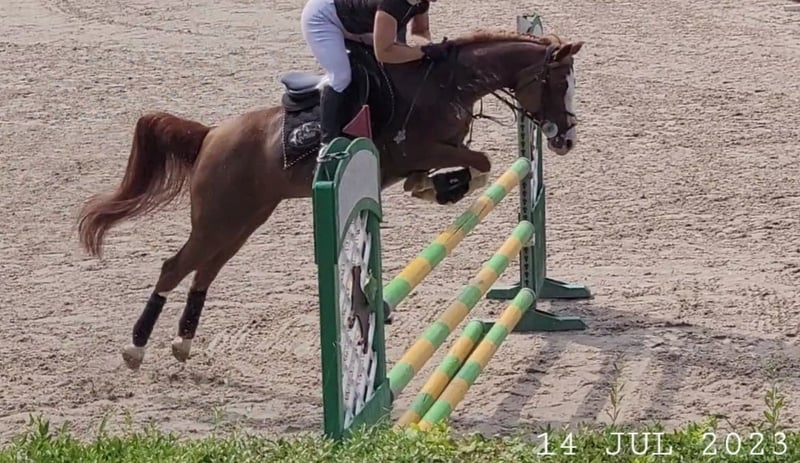 Zum Verkauf steht eine außergewöhnliche, schöne Vollblutaraberstute Miss Maxima (Enson x Metaxa), geboren im Jahr 2009. Sie verfügt über ein offizielles Höhenzertifikat von 148 cm (Ponystatur, Gruppe D). Die Stute beeindruckt durch ihre großzügigen und eindrucksvollen Bewegungen, geprägt von außergewöhnlicher Elastizität, Wendigkeit, Schnelligkeit sowie einer seltenen Technik im Springen für diese Rasse und einem enormen Arbeitseifer. Im Umgang ist sie äußerst brav und ruhig. Im Jahr 2021 begann sie mit dem Sporttraining und nahm in den Jahren 2022 bis 2024 an Springprüfungen der Klasse L und P teil, wobei sie Potenzial für höhere Wettbewerbe zeigte. Leider erlitt sie eine Verletzung (degenerative Veränderungen im Sprunggelenk), die sie vom Sport ausschließt. Dies beeinträchtigt jedoch weder ihre Lebensqualität noch ihre Zuchtfähigkeit. Die Stute befindet sich in kontinuierlichem Training (Longieren, leichte Arbeit unter dem Reiter). Miss Maxima ist die ideale Kandidatin für die Zucht herausragender Sportponys. Ihre Technik, Dynamik und Schönheit garantieren die Weitergabe wertvoller Gebrauchseigenschaften an ihre Nachkommen. Sie ist sowohl für Züchter arabischer Pferde als auch für Liebhaber moderner Reitpony-Zucht geeignet. In der Zucht bewährt, bringt sie Nachkommen mit sehr korrekter Anatomie und edlem Typ hervor. Pedigree: https://www.bazakoni.pl/missmaxima-enson-metaxa Nachkommen: https://www.bazakoni.pl/missempire-empire-missmaxima https://www.bazakoni.pl/mequator-equalion-missmaxima Videos: Bewegung (aktuell): https://youtu.be/WHLtTZr5--E?is=yP7NPqt17odmHfrc Bewegung (vor Verletzung): https://youtu.be/5JDY2B_nCj8?is=atGzC9NDbV6-zTAk Springen: https://youtu.be/jUQmPDYuuSw?is=9OGlbEup-xqcCaNy