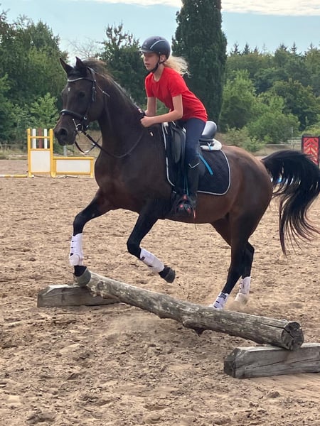 Zum Winterpreis und damit sie rechtzeitig vor dem abfohlen in ihrem neuen Zuhause heimisch werden kann BS Balalijka ist eine dunkelbraune Araberstute, geb 2009 Sie ist gedeckt vom Asil Ägyptischen Rapphengst BS Echnaton für 2026. 2 weibliche Nachkommen von Echnaton aus diesem Jahr können im Gestüt angeschaut werden. Ein 3 Jöhriger Rapphengst vom Gestüt wird gerade problemlos und schonend angeritten, der 5 Jöhrige Sohn läuft seine erste Distanzsaison und ist zur Körung zugelassen Balalijka hatte bereits 2 Fohlen. Eines davon von einem Hannoveraner Hengst aus der Weltmeyer Linie Nach ihren 2 ten Fohlen wurde sie auf den Distanzsport vorbereitet und hat ab der Saison 20/21 ihren Ü60 Distanzeinsteiger in den Sport begleitet. Dabei deckt sie mit ihrer kräftigen Statur ihren Reiter mit über 1,80m gut ab. Der Weg ging für beide bis zum mittleren MTR über 93 km ohne Ausfälle. Auffällig sind ihre guten Pulswerte und schnelle Regeneration. Jeden Pulsritt hat sie in den Top 3 beendet Im Juli 22 war sie lahm und wurde in der Klinik vorgestellt. Es wurde ein Chip gefunden und entfernt. Danach wurde sie in Ruhe wieder antrainiert. Eine erneute Lahmheit ist nicht aufgetreten, alle Scheckkarten seit dem sauber 2024 und 2025 hat sie 2 Jugendlichen Reitern einen Start in den Sport ermöglicht. Balalijka zeigt sich dabei kinderfreundlich. 2025 hat sie mit ihrer Reiterin am Jugendcamp teilgenommen Balalijkas weiter weg kann vielseitig sein. Ob er in der Zucht weitergeht, Freizeit oder Sport oder Lehrpferd wird ist offen Aktuell wird sie geritten und kann bei Interesse Probegeritten werden.
